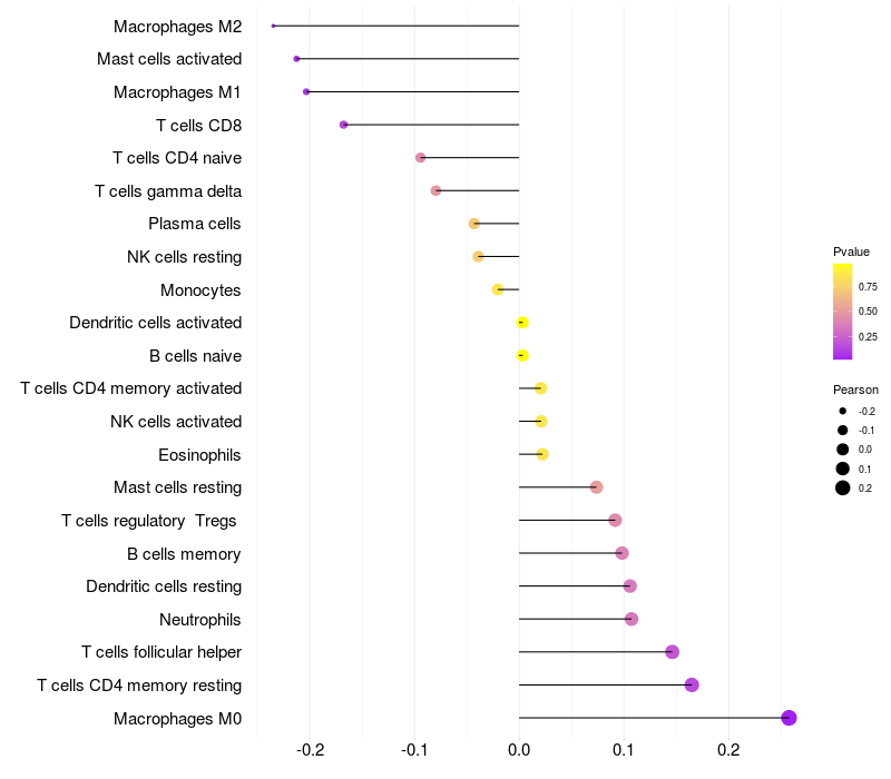 Lollipop of TET1 expression and immune infiltrating cell level correlation result in HBV+ samples