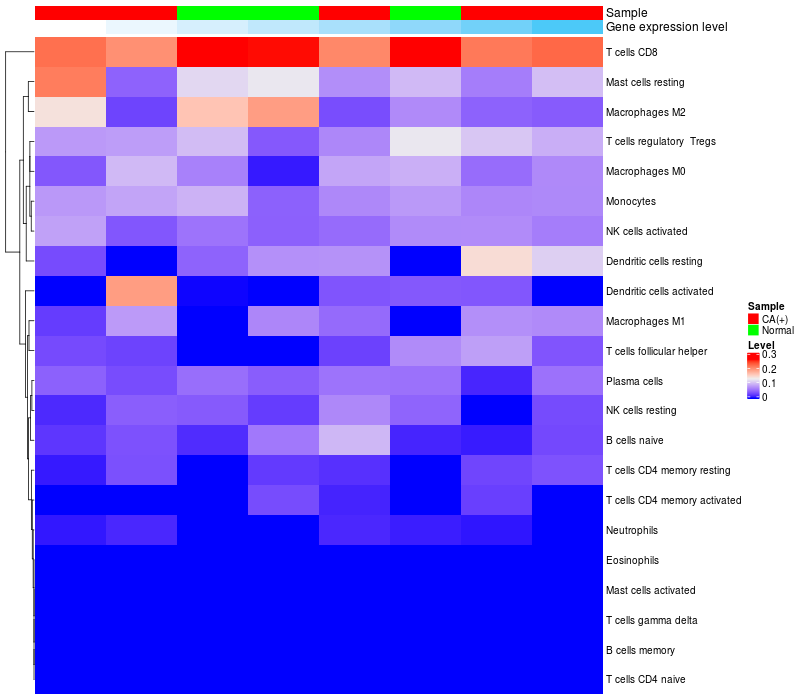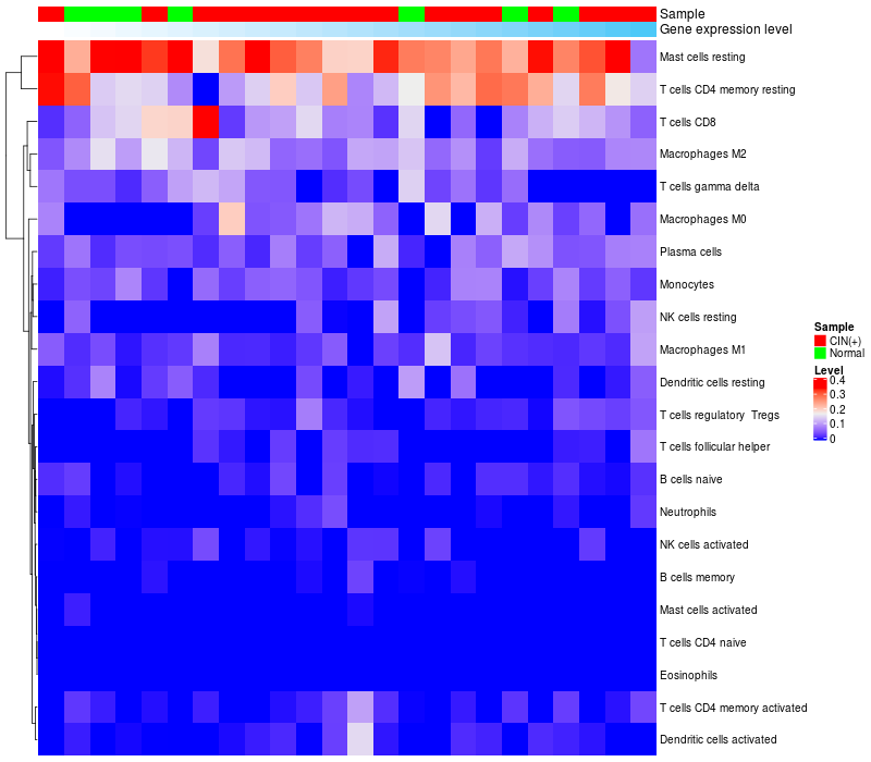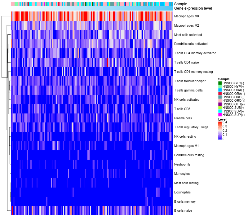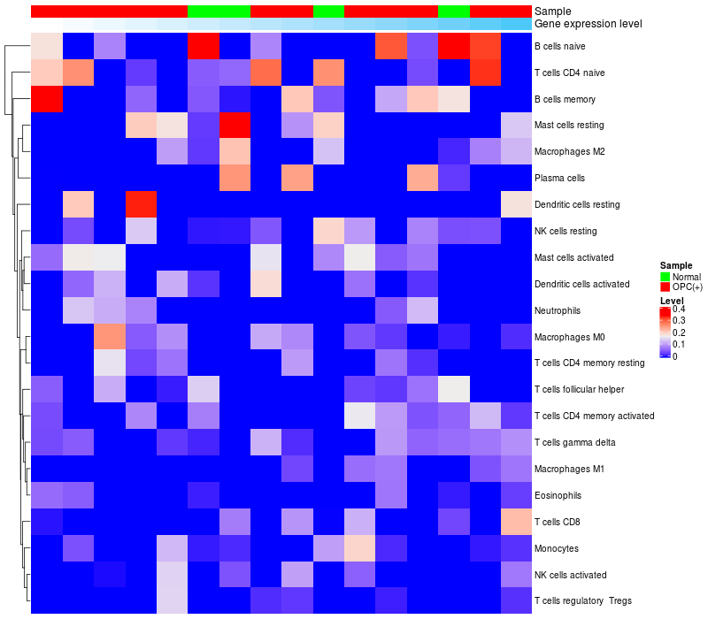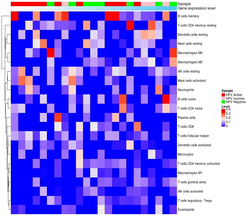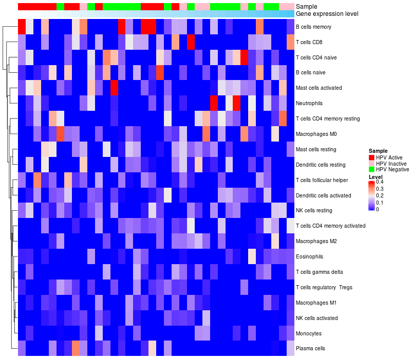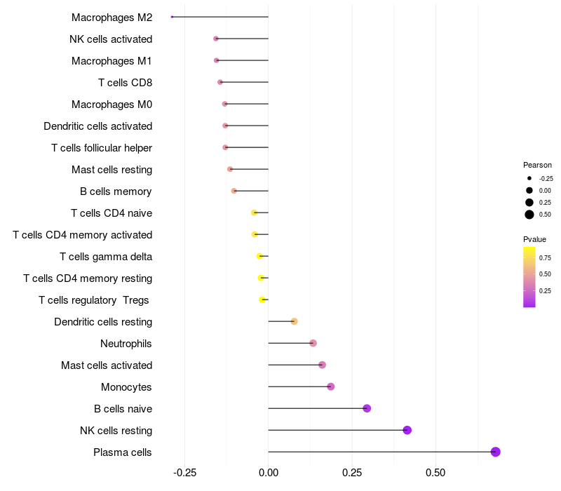 Lollipop of TEX13B expression and immune infiltrating cell level correlation result in HPV+ samples