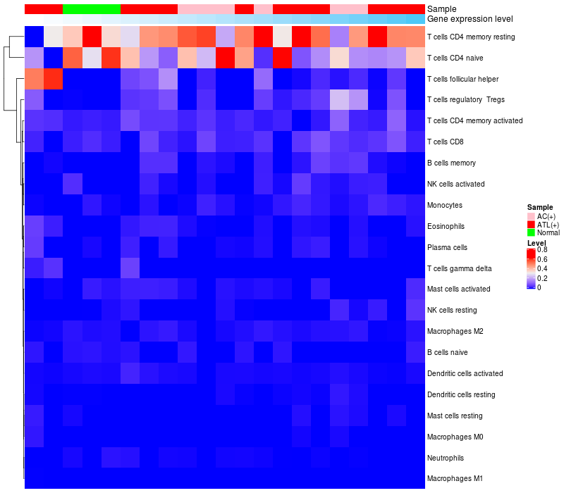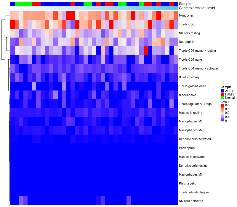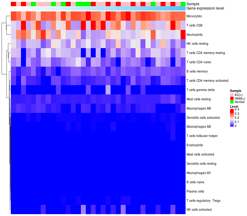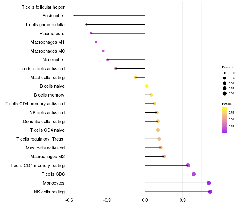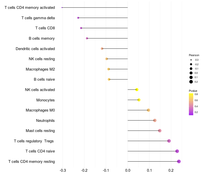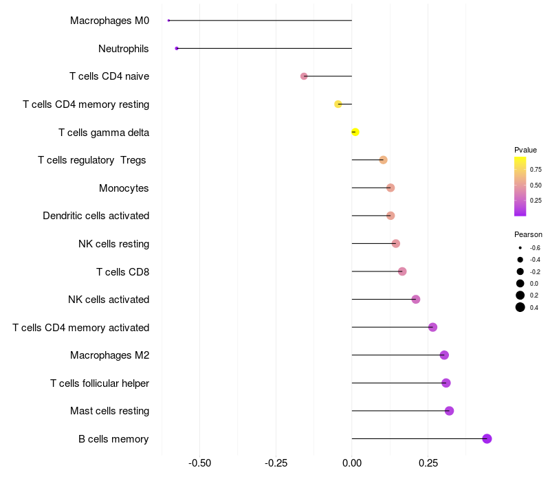 Lollipop of TFAP2C expression and immune infiltrating cell level correlation result in HTLV1+ samples