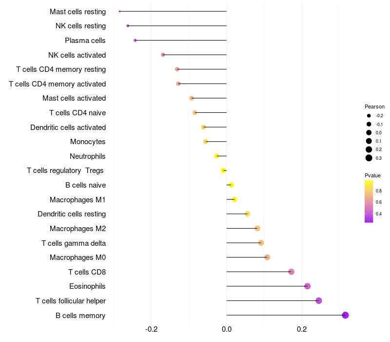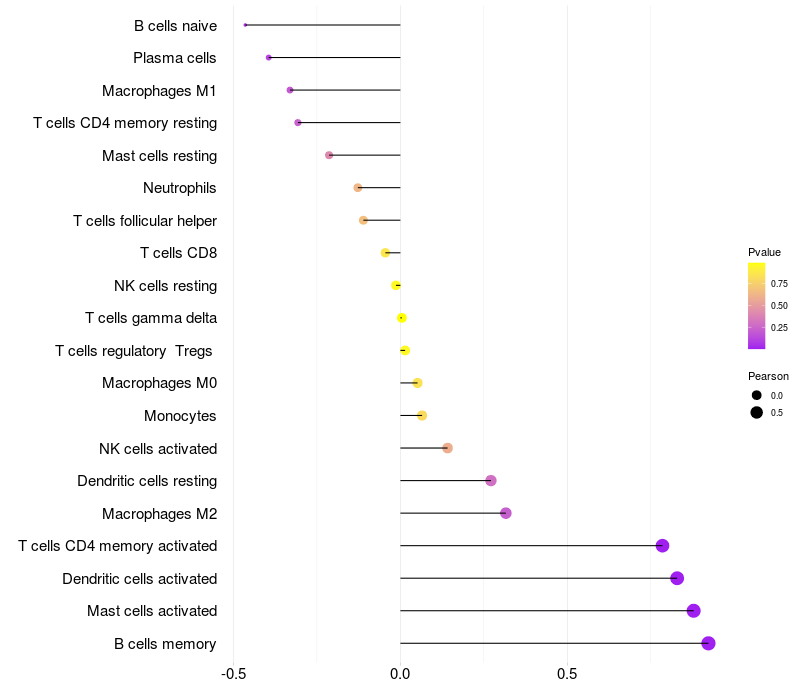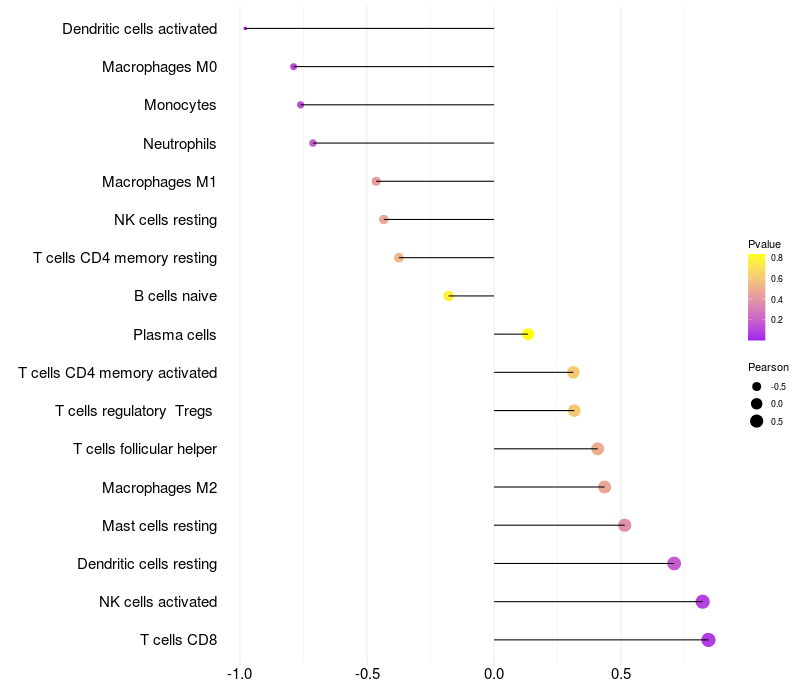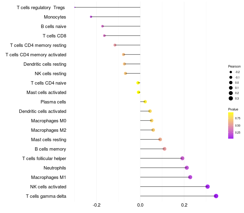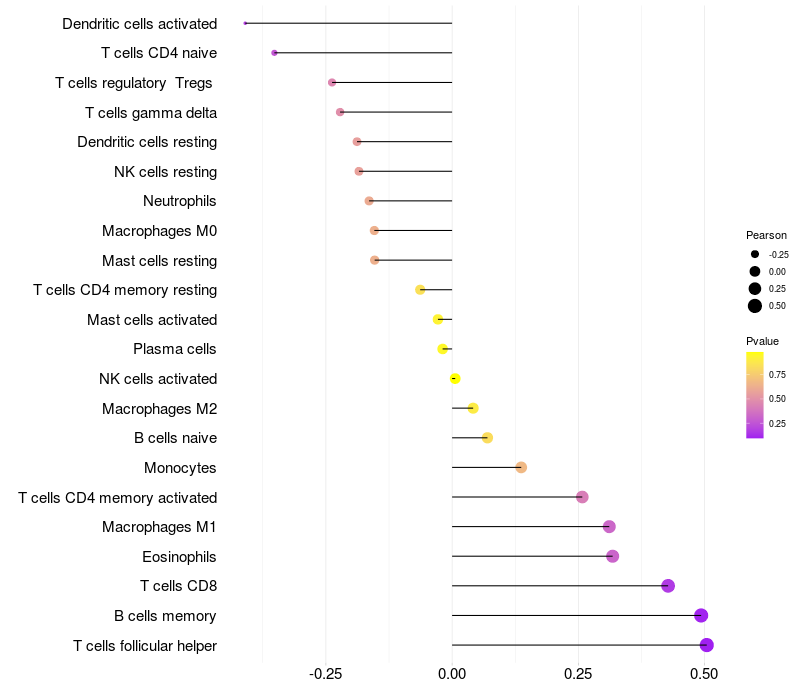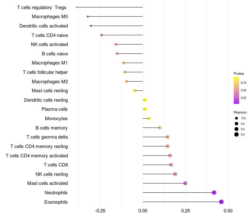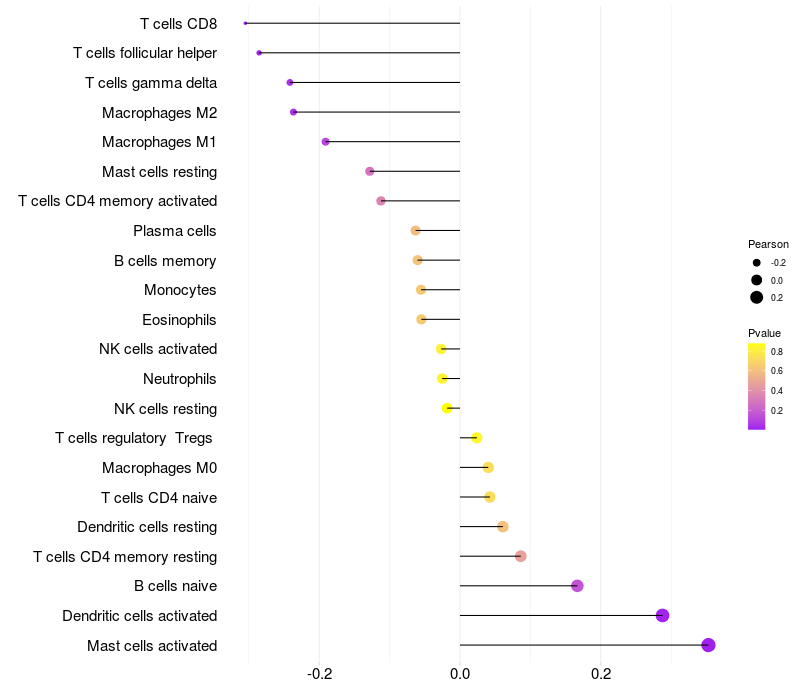 Lollipop of TFAP2E expression and immune infiltrating cell level correlation result in HPV+ samples