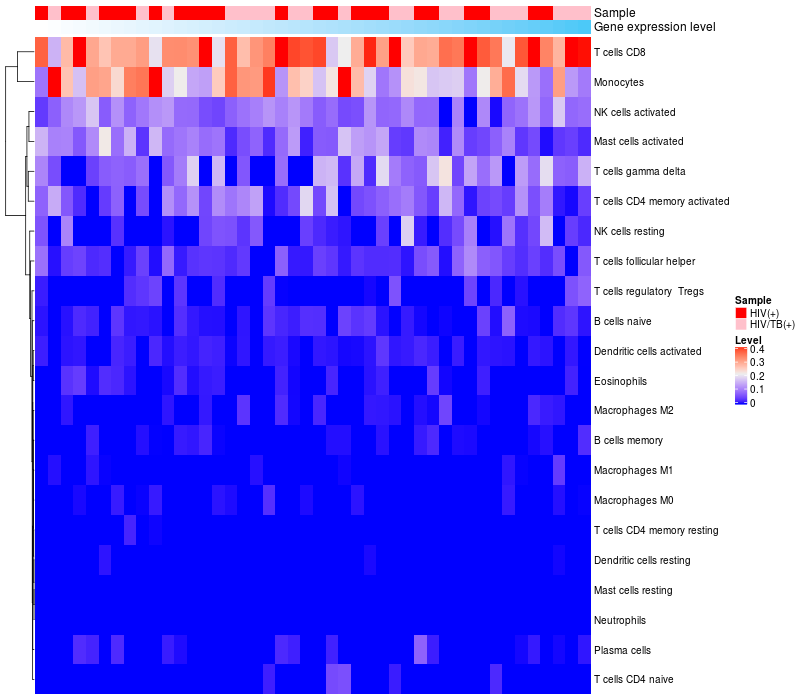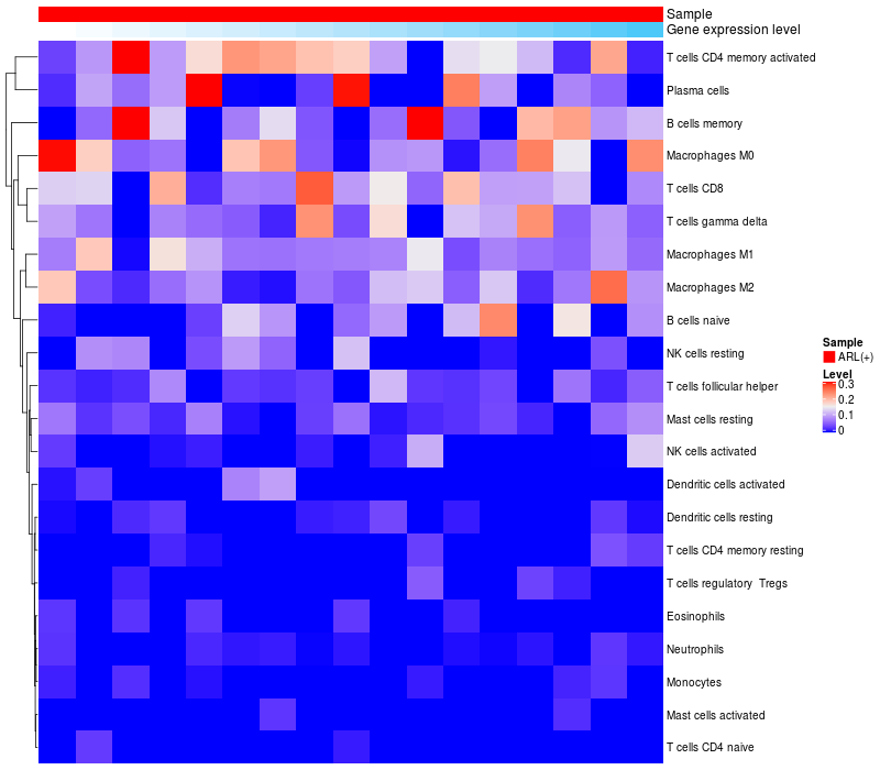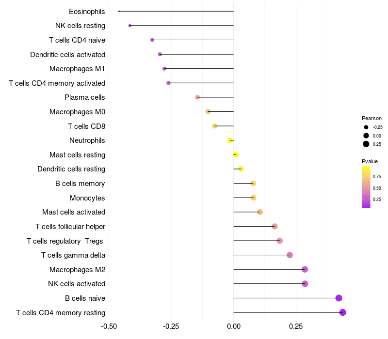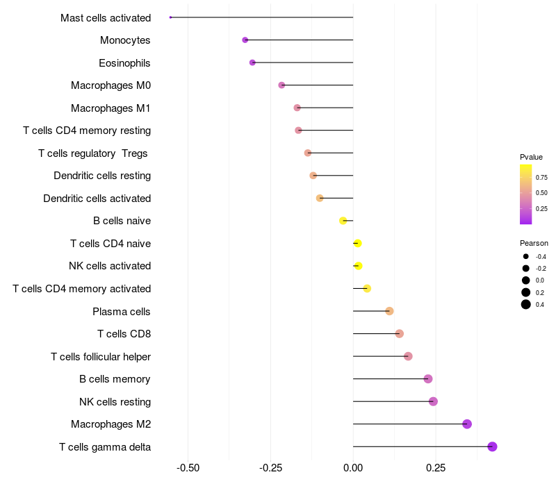 Relationship between gene expression and immune infiltrating cell level
