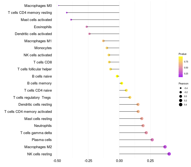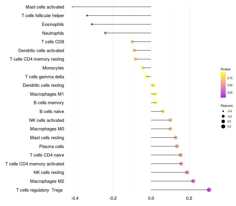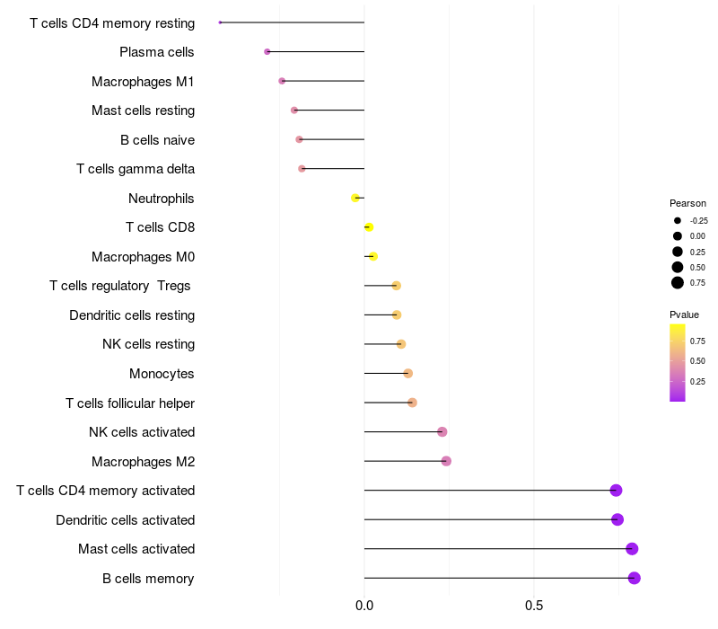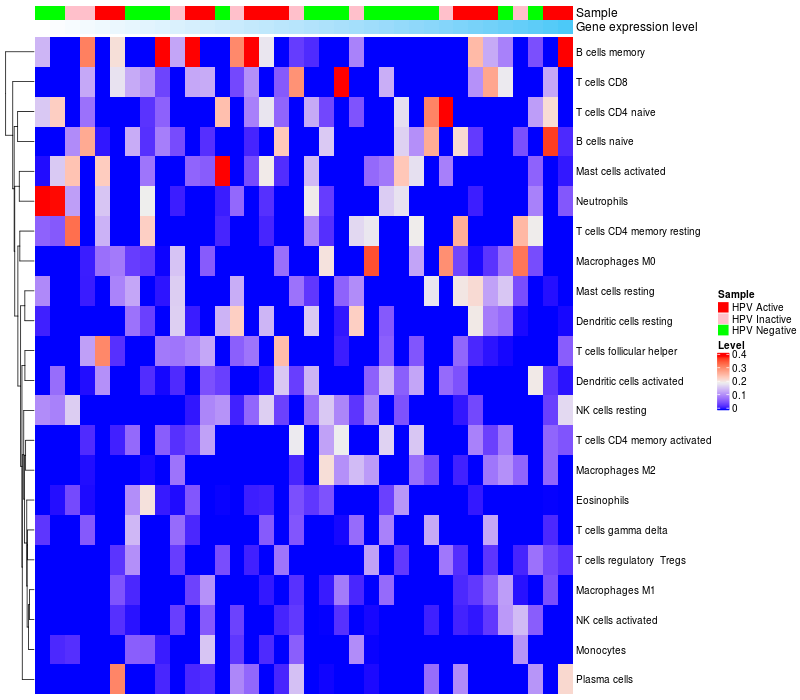 HeatMap of cell type fractions in all samples Lollipop of TFDP2 expression and immune infiltrating cell level correlation result in HPV+ samples
