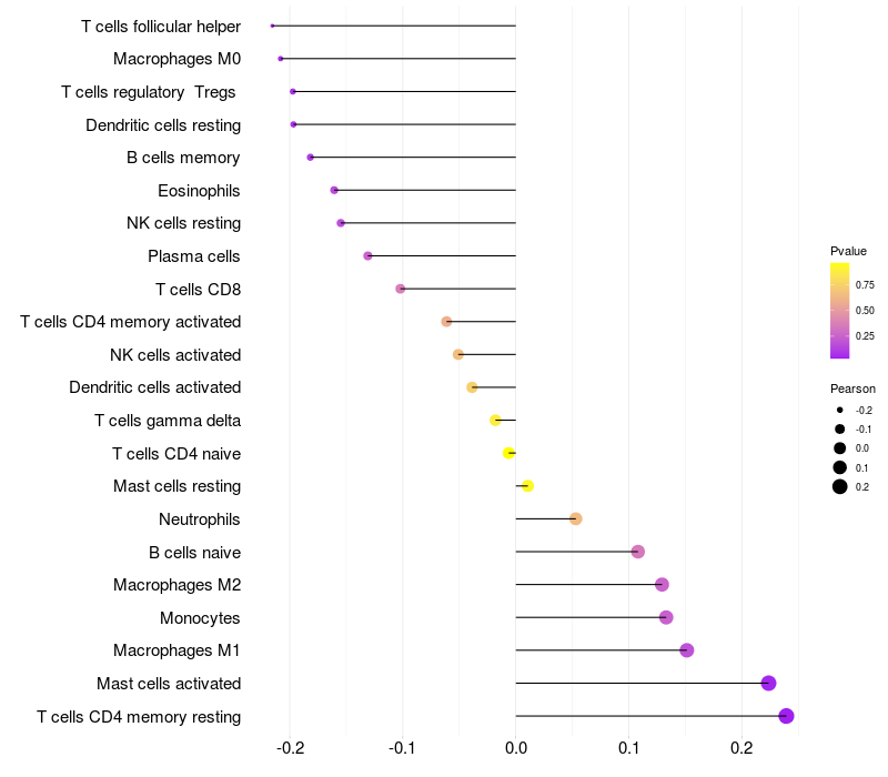 Lollipop of TGFBR2 expression and immune infiltrating cell level correlation result in HBV+ samples