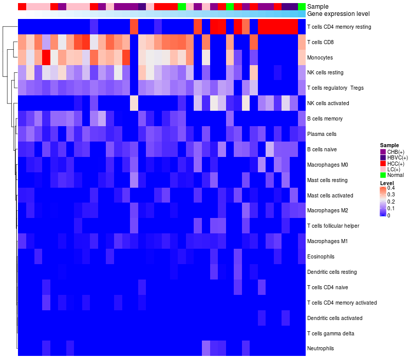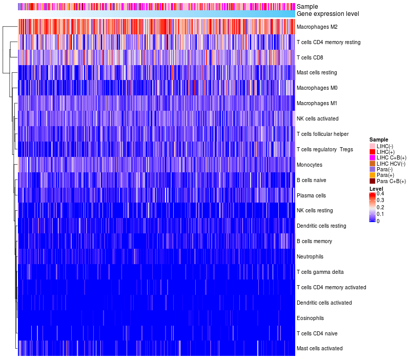 Liver hepatocellular carcinoma HCV (HBV+)(86), Liver hepatocellular carcinoma HCV (HBV-)(19), Liver hepatocellular carcinoma (HBV+)(209), Liver hepatocellular carcinoma (HBV+)(60), Paracancerous HCV (HBV+)(4), Paracancerous (HBV-)(28), Paracancerous (HBV+)(18) |