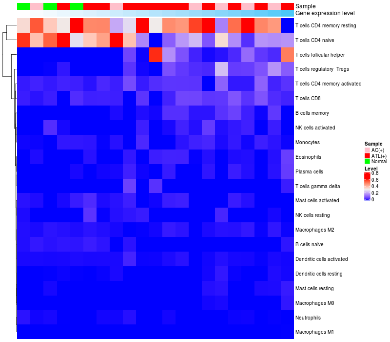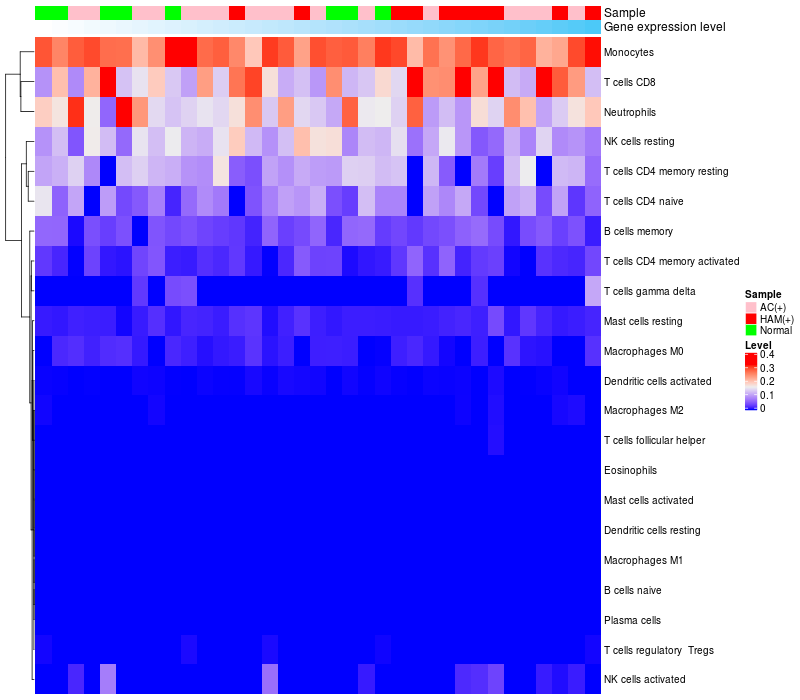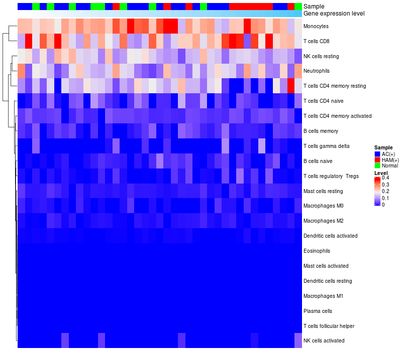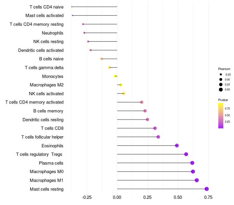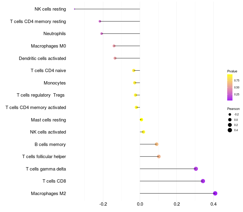 Relationship between gene expression and immune infiltrating cell level