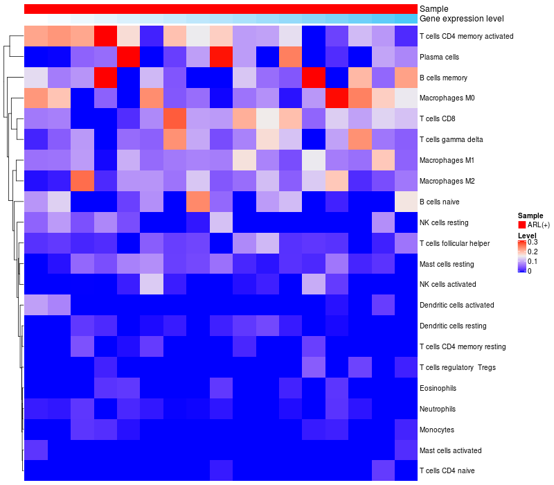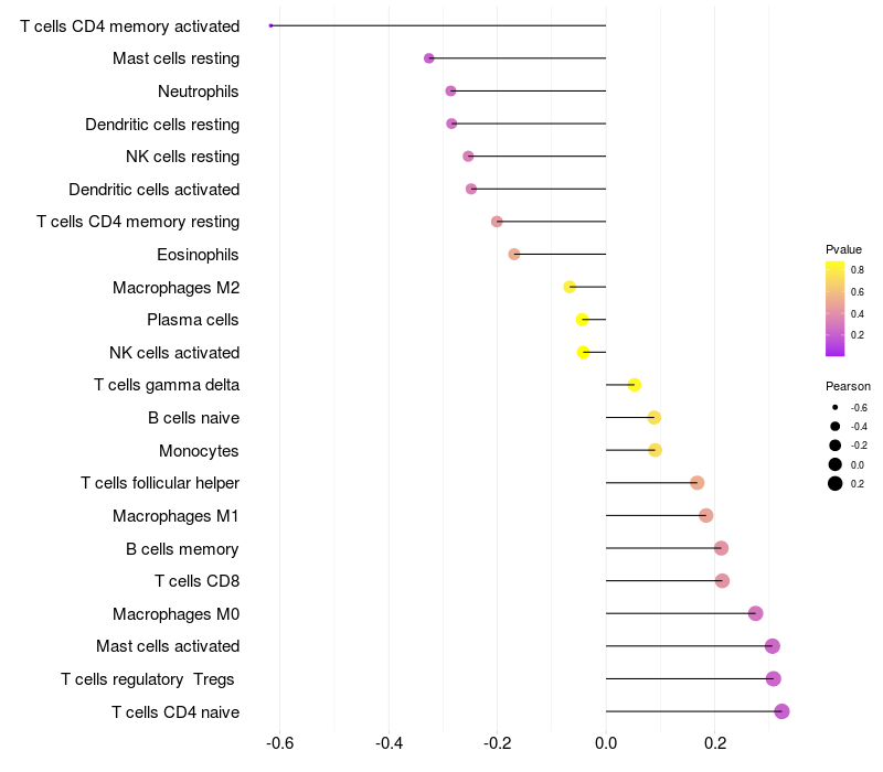 Relationship between gene expression and immune infiltrating cell level