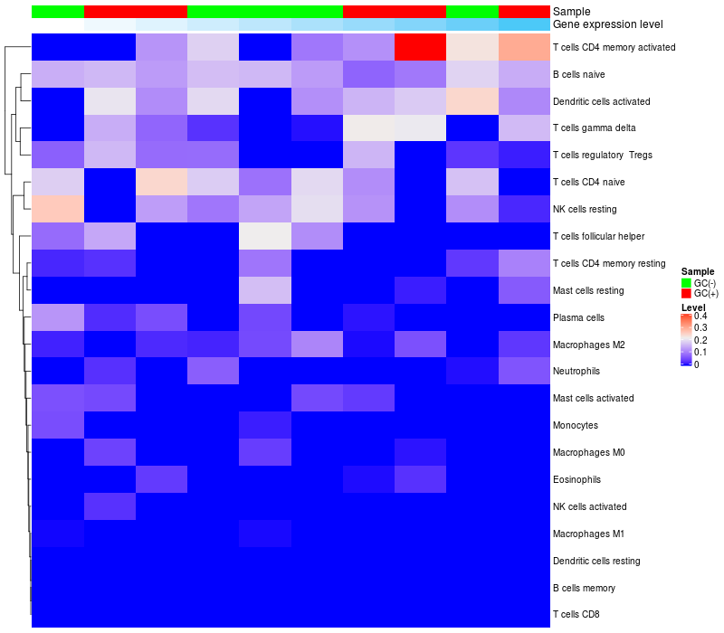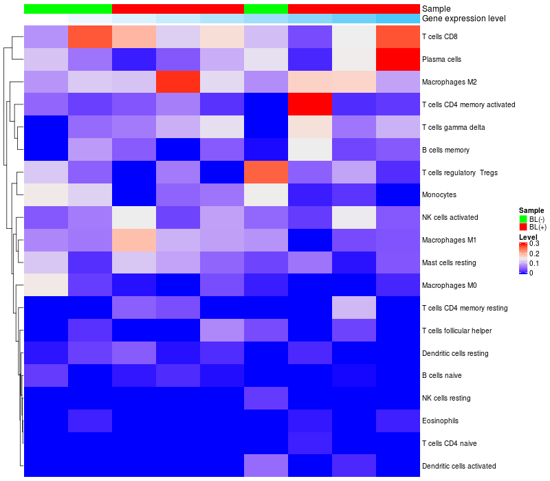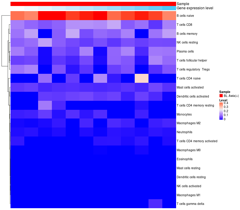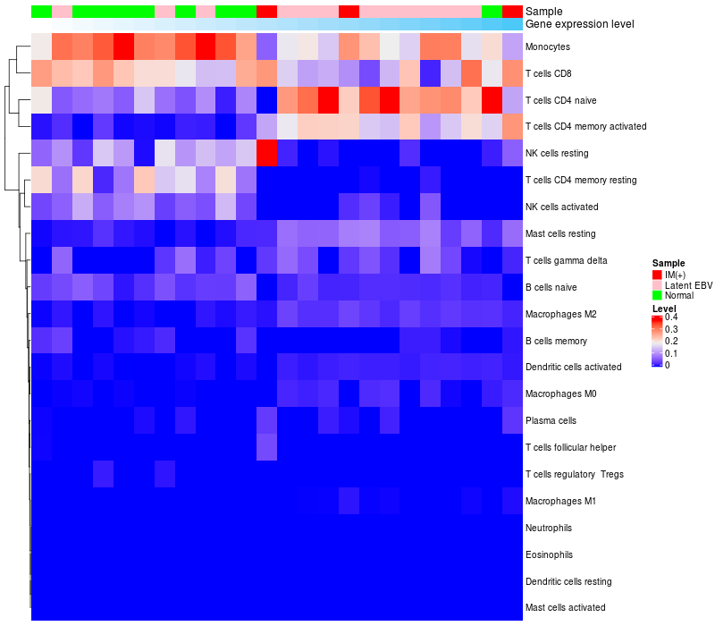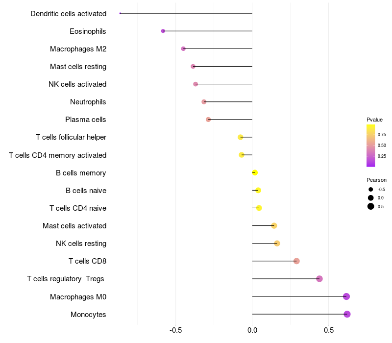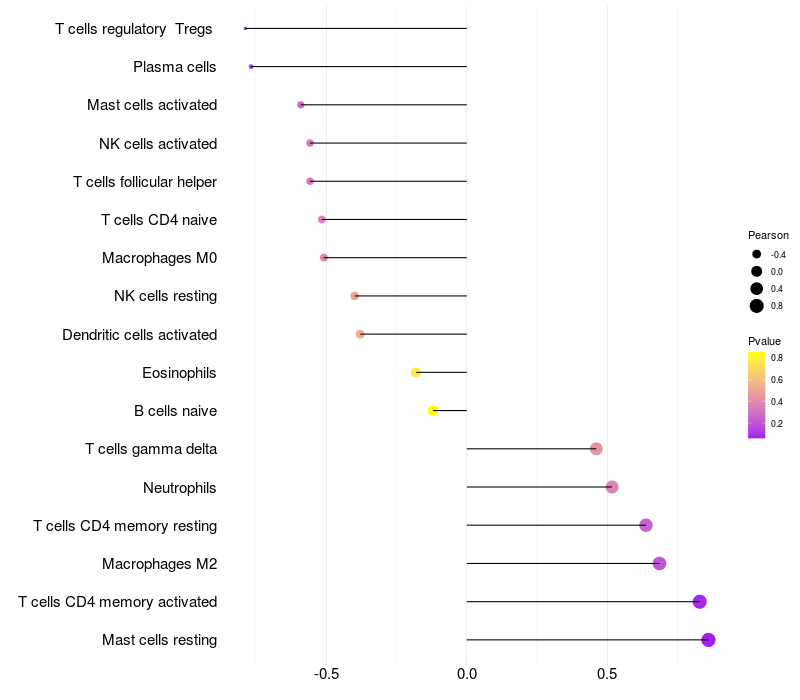 Lollipop of THSD4 expression and immune infiltrating cell level correlation result in EBV+ samples