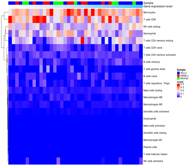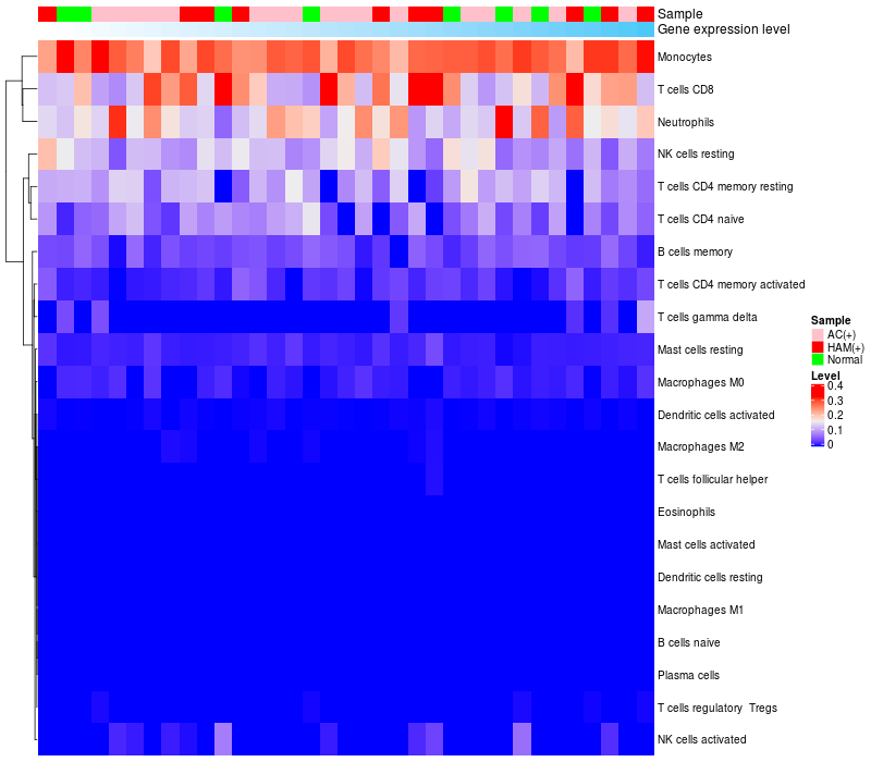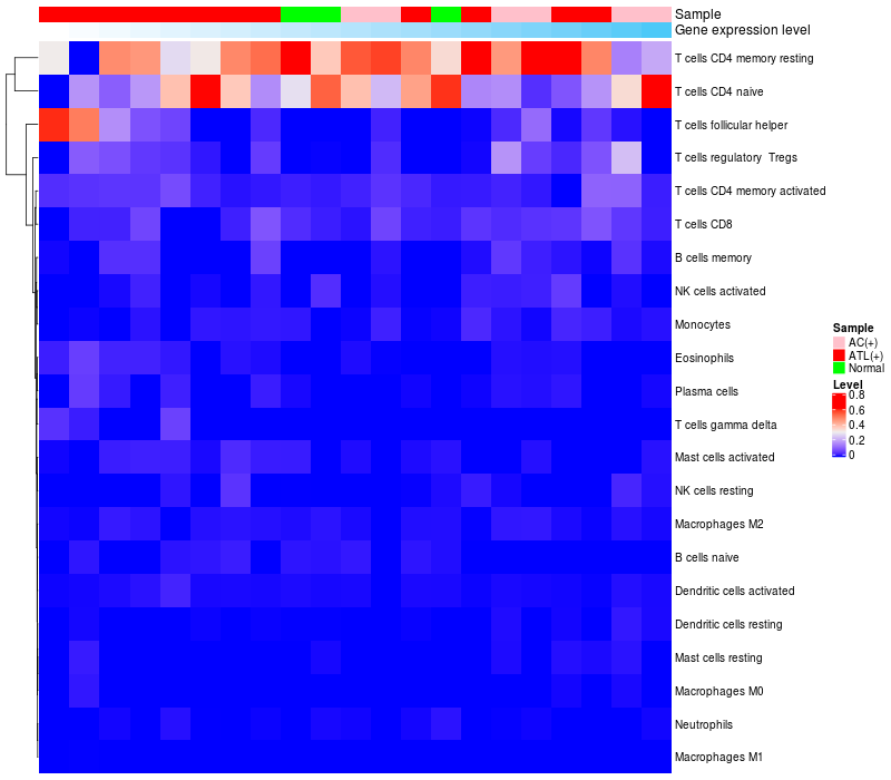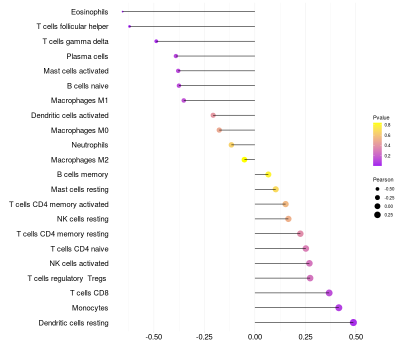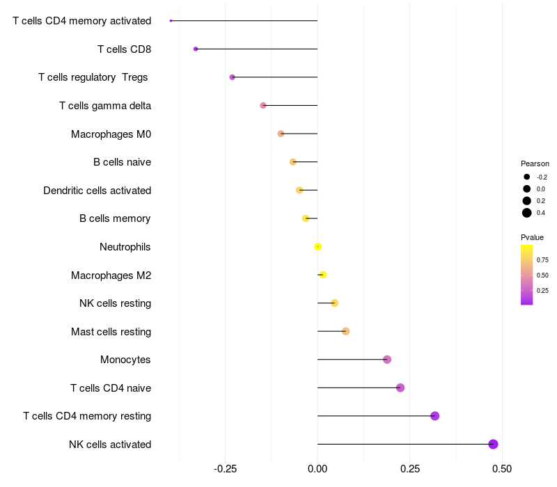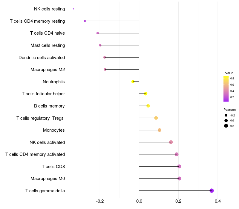 Lollipop of THTPA expression and immune infiltrating cell level correlation result in HTLV1+ samples