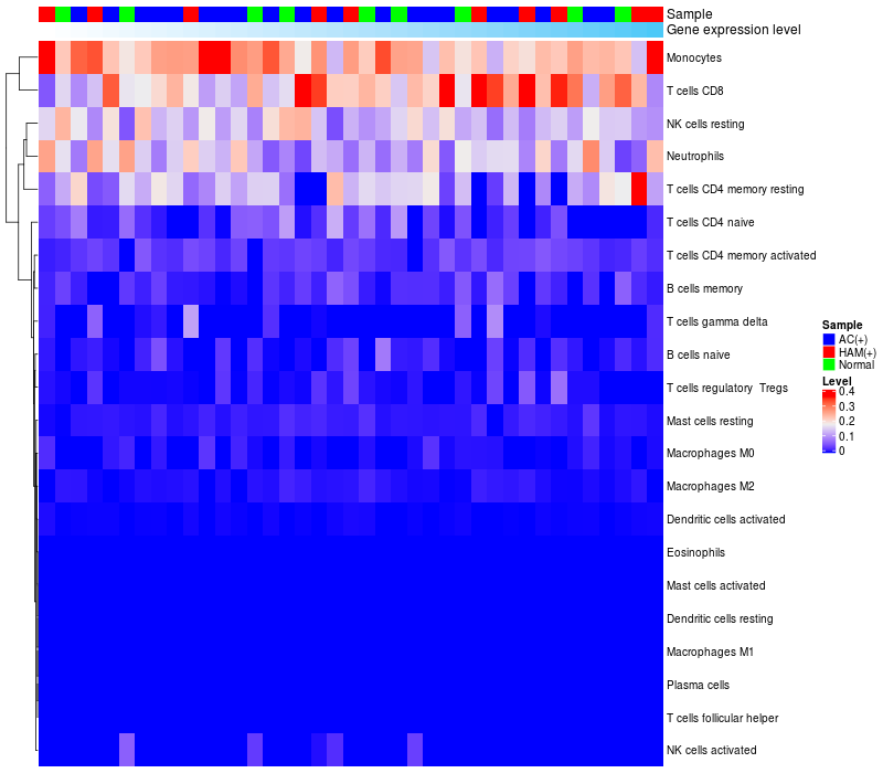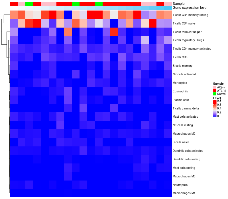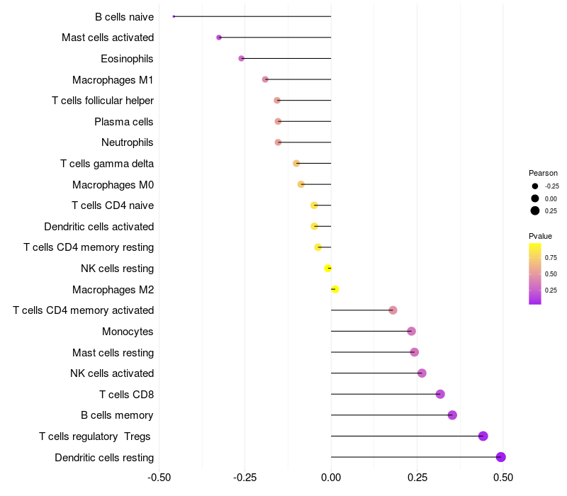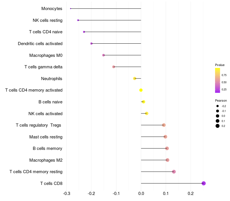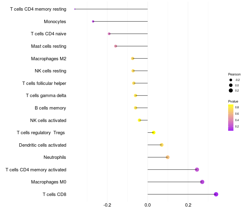 Lollipop of TIFA expression and immune infiltrating cell level correlation result in HTLV1+ samples