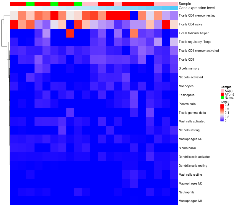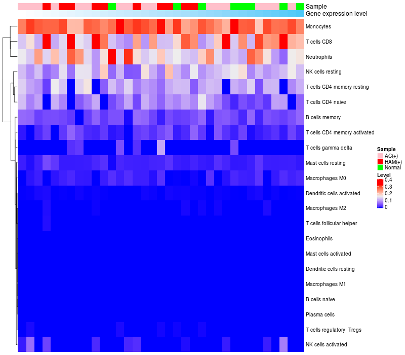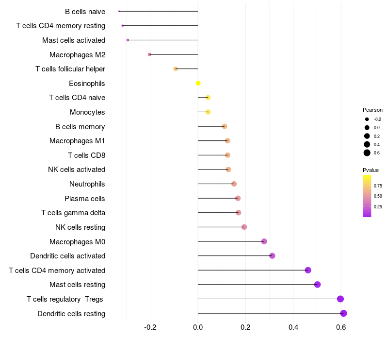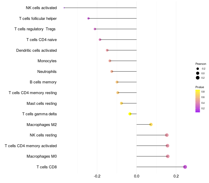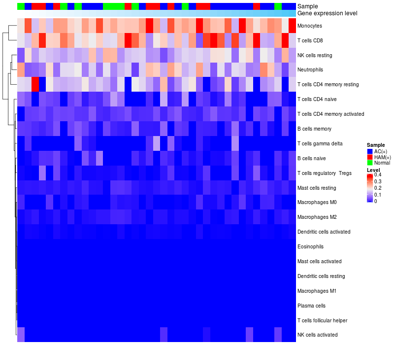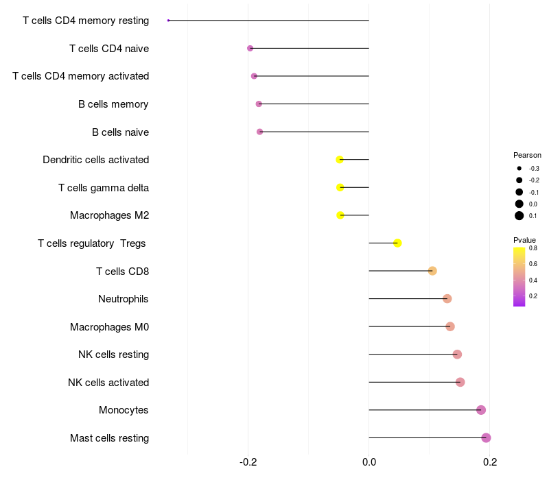Relationship between gene expression and immune infiltrating cell level