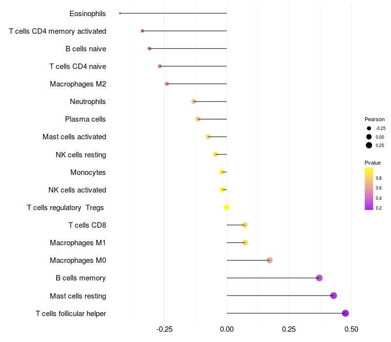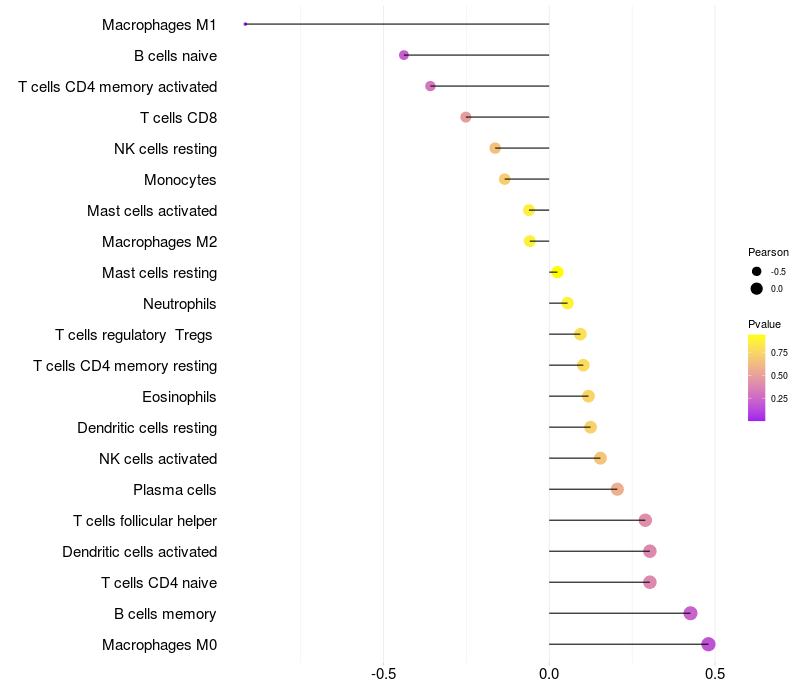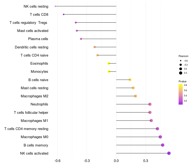 Relationship between gene expression and immune infiltrating cell level