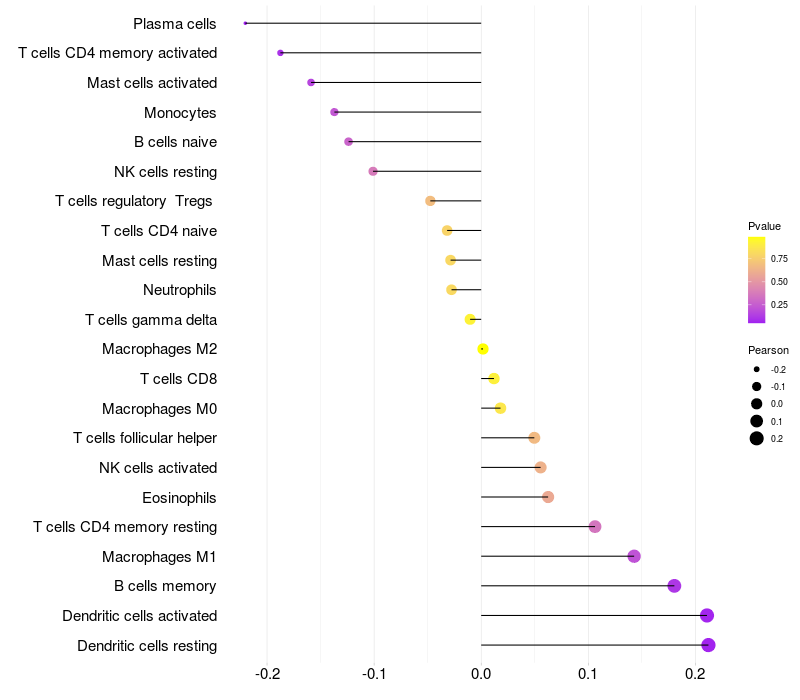 Lollipop of TLK1 expression and immune infiltrating cell level correlation result in HBV+ Liver cirrhosis samples