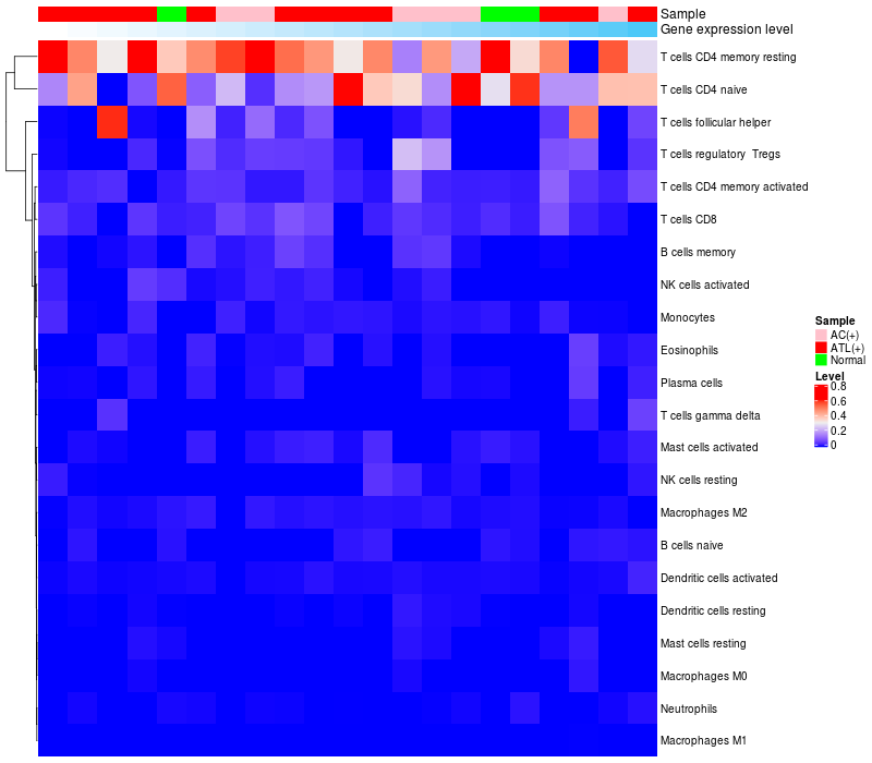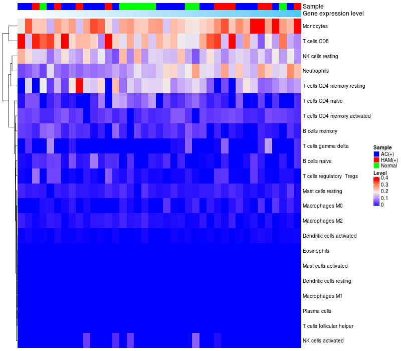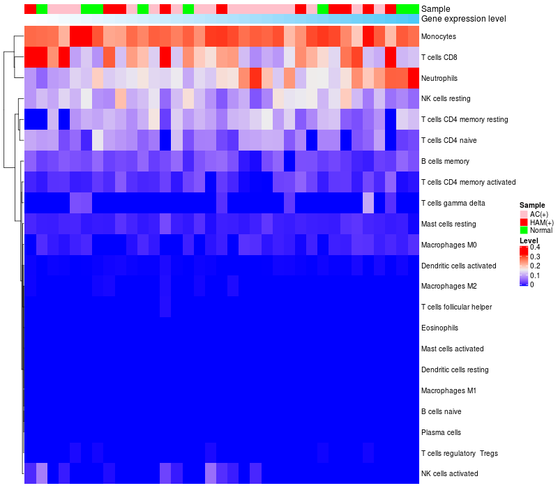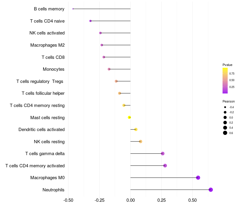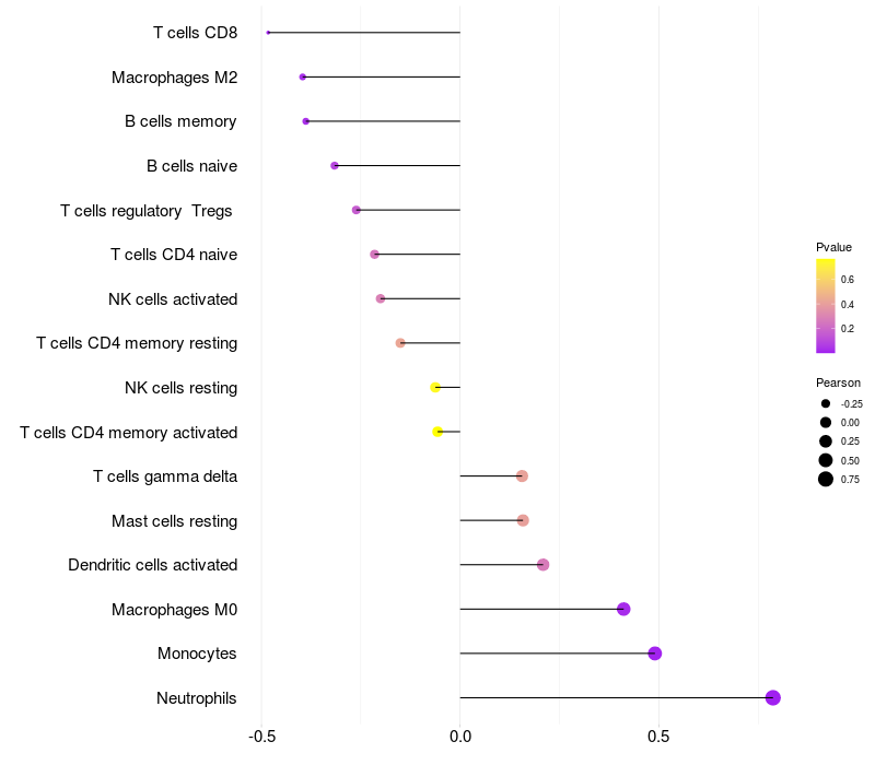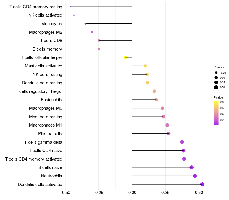 Relationship between gene expression and immune infiltrating cell level