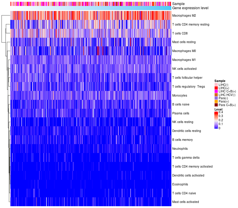 Liver hepatocellular carcinoma HCV (HBV+)(86), Liver hepatocellular carcinoma HCV (HBV-)(19), Liver hepatocellular carcinoma (HBV+)(209), Liver hepatocellular carcinoma (HBV+)(60), Paracancerous HCV (HBV+)(4), Paracancerous (HBV-)(28), Paracancerous (HBV+)(18) |