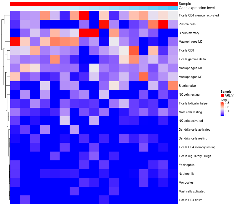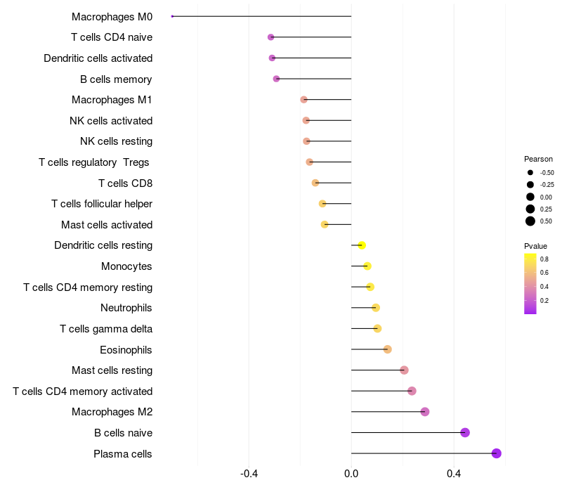 Relationship between gene expression and immune infiltrating cell level