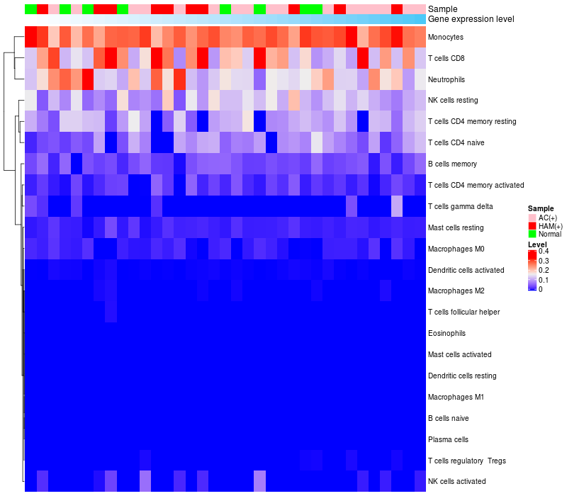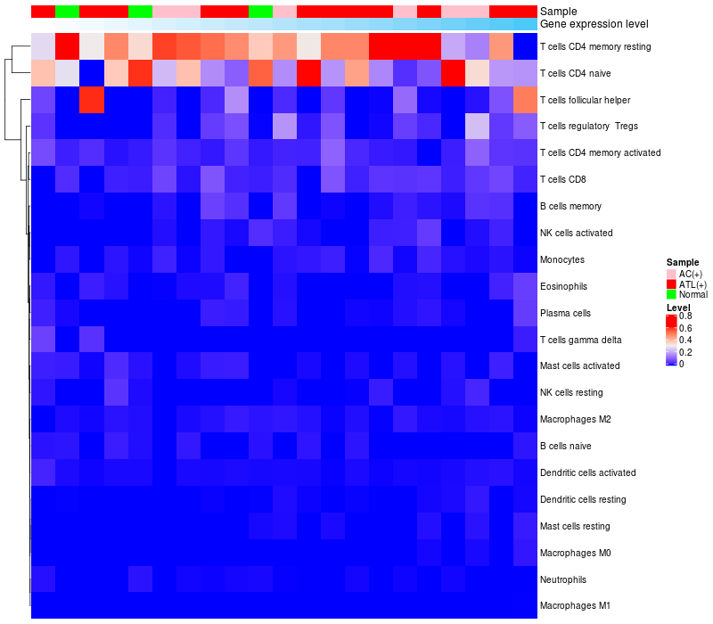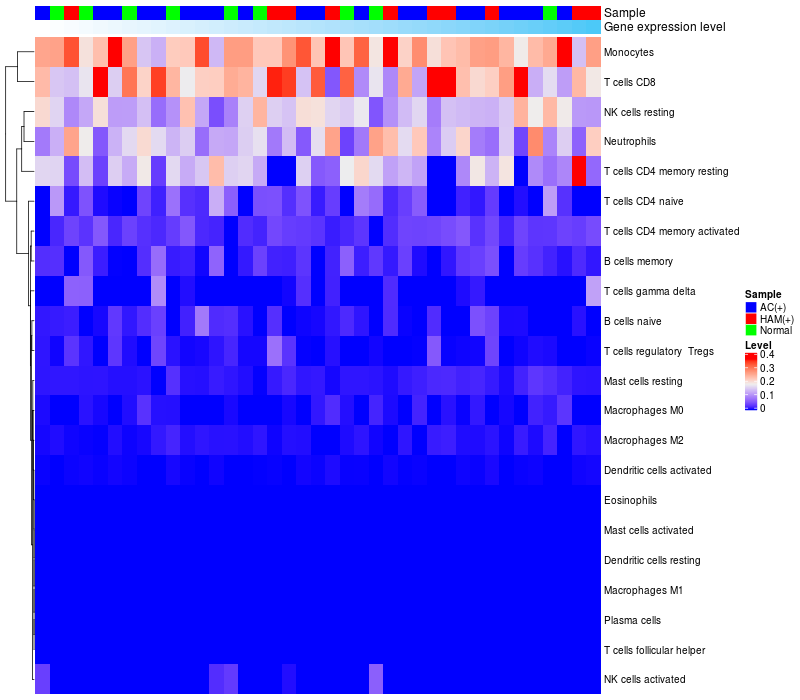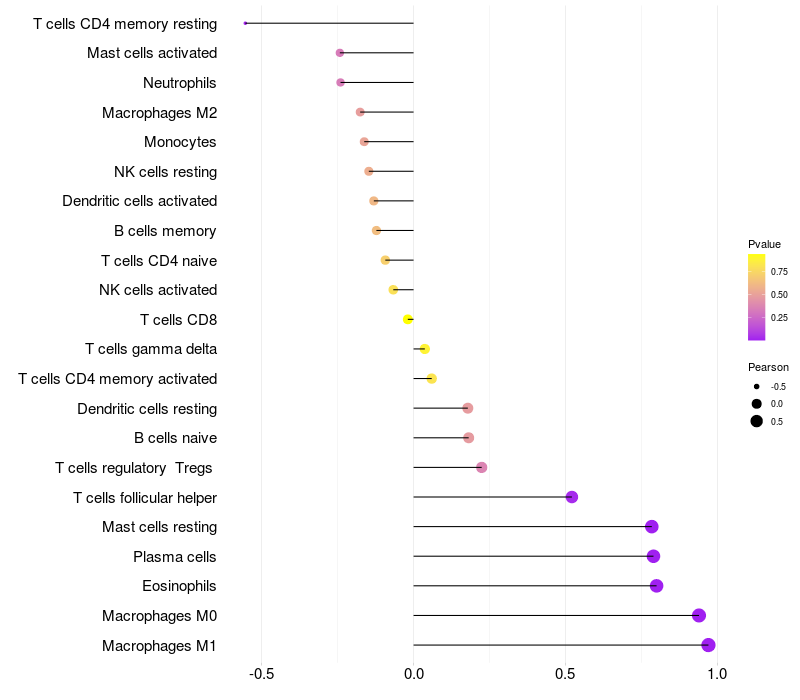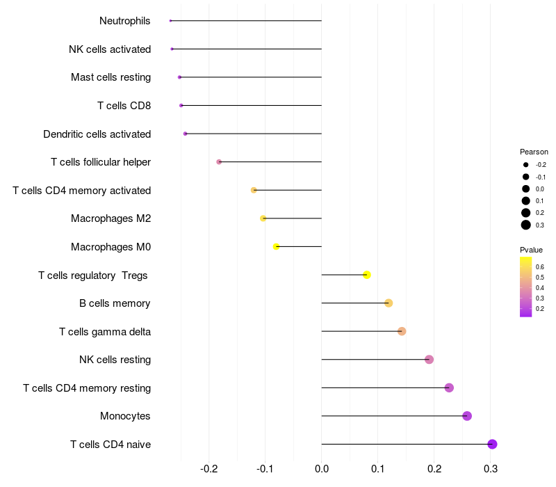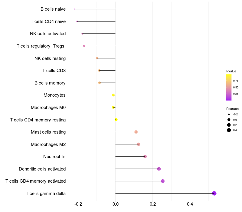 Lollipop of TMCC2 expression and immune infiltrating cell level correlation result in HTLV1+ samples