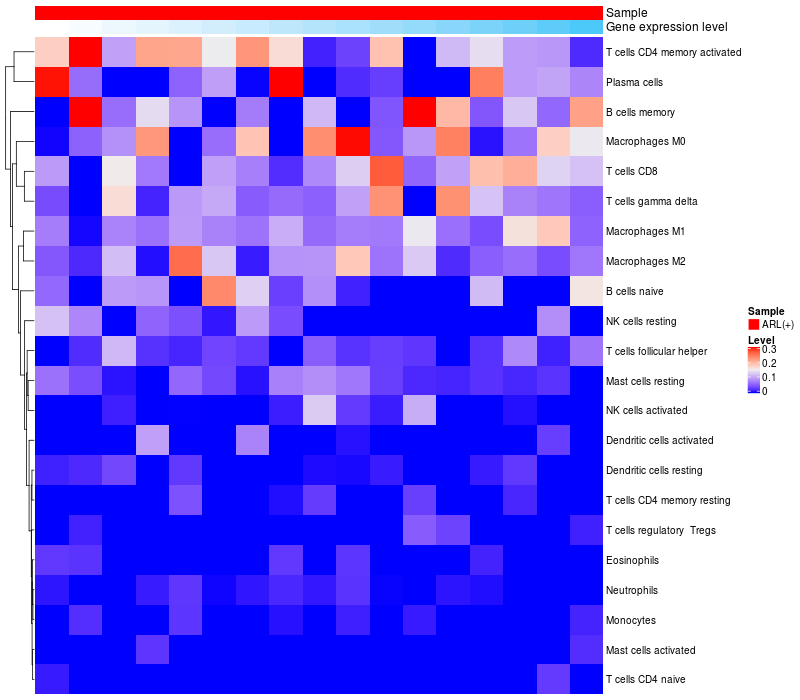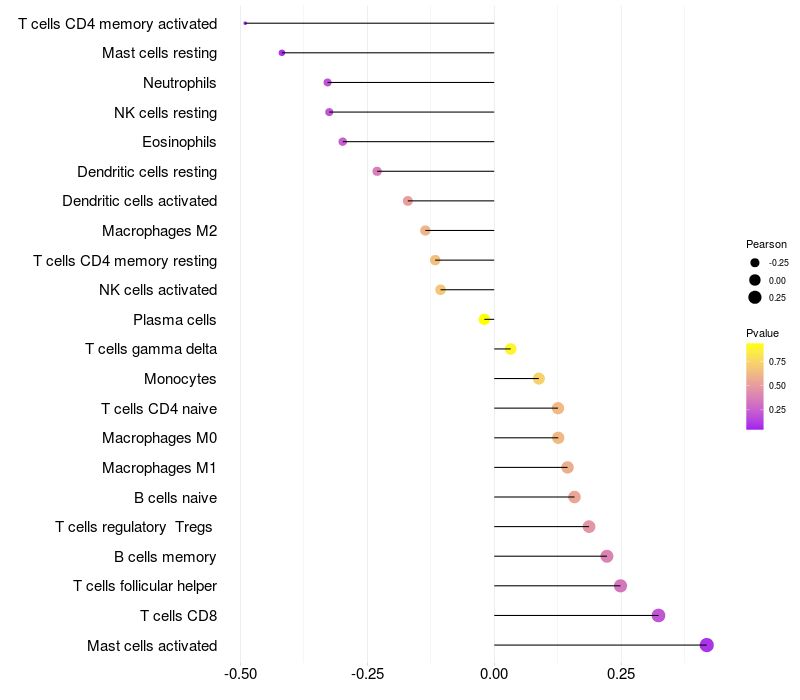 Relationship between gene expression and immune infiltrating cell level