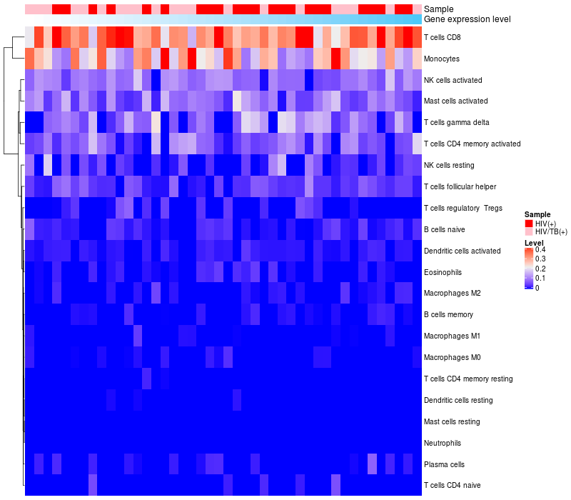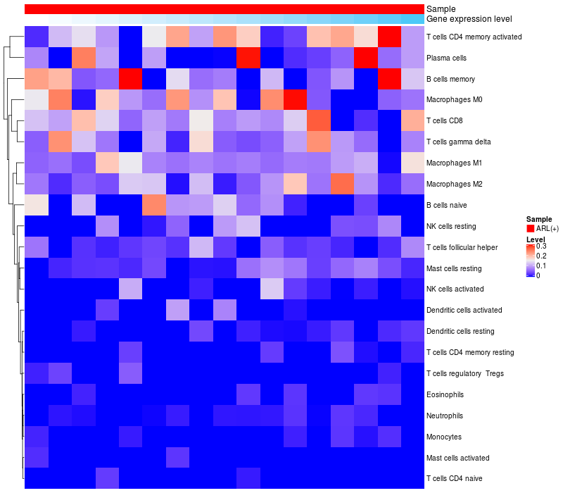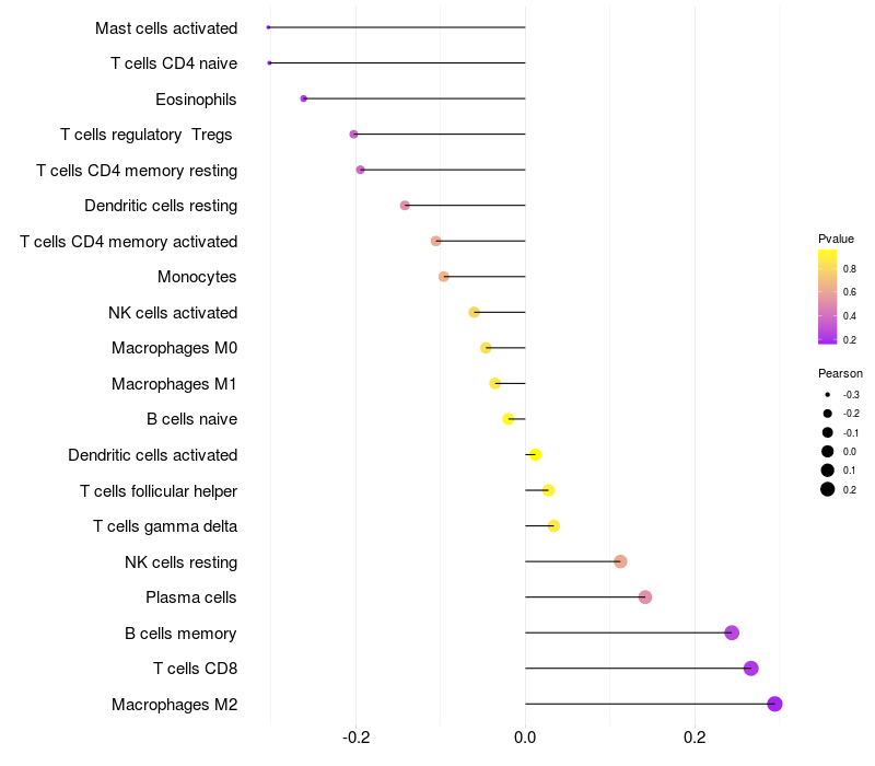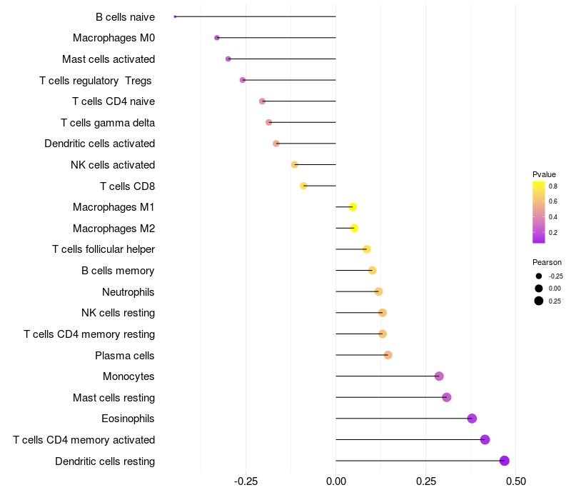 Relationship between gene expression and immune infiltrating cell level