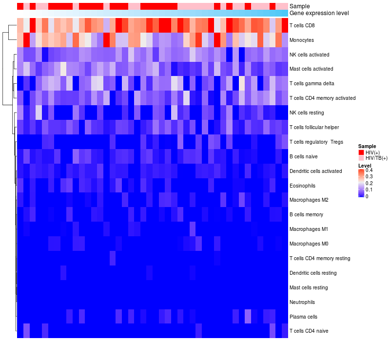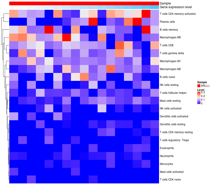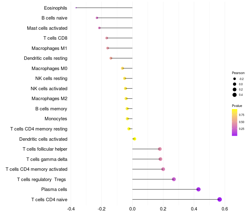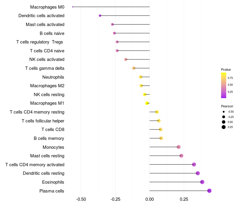 Relationship between gene expression and immune infiltrating cell level