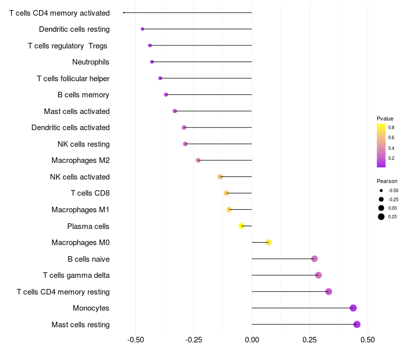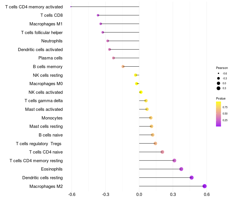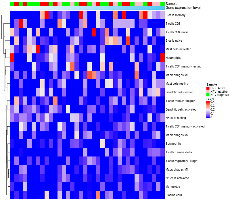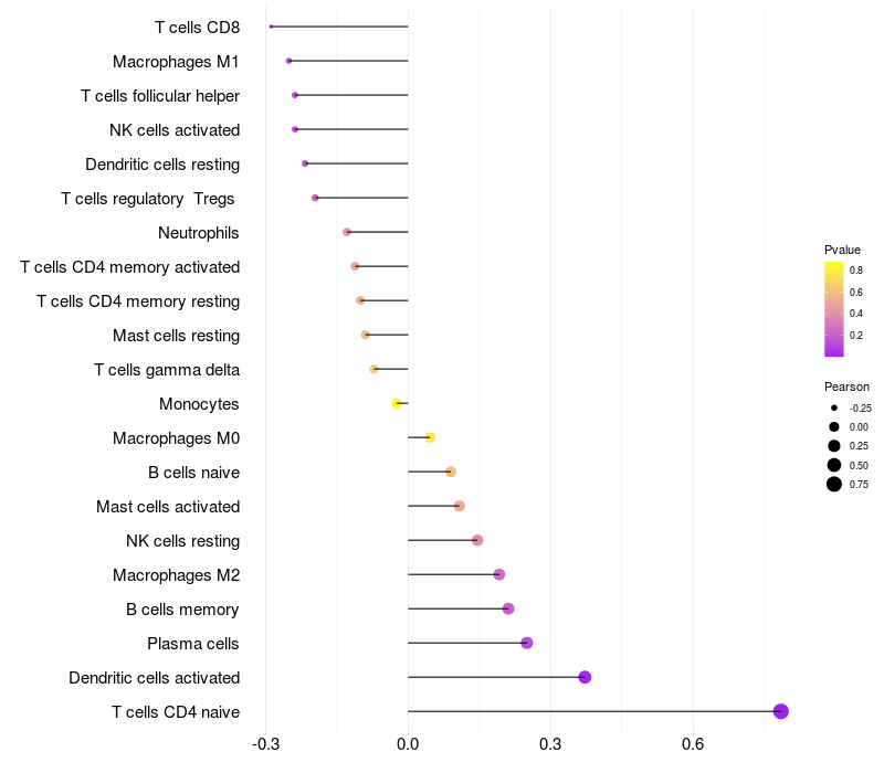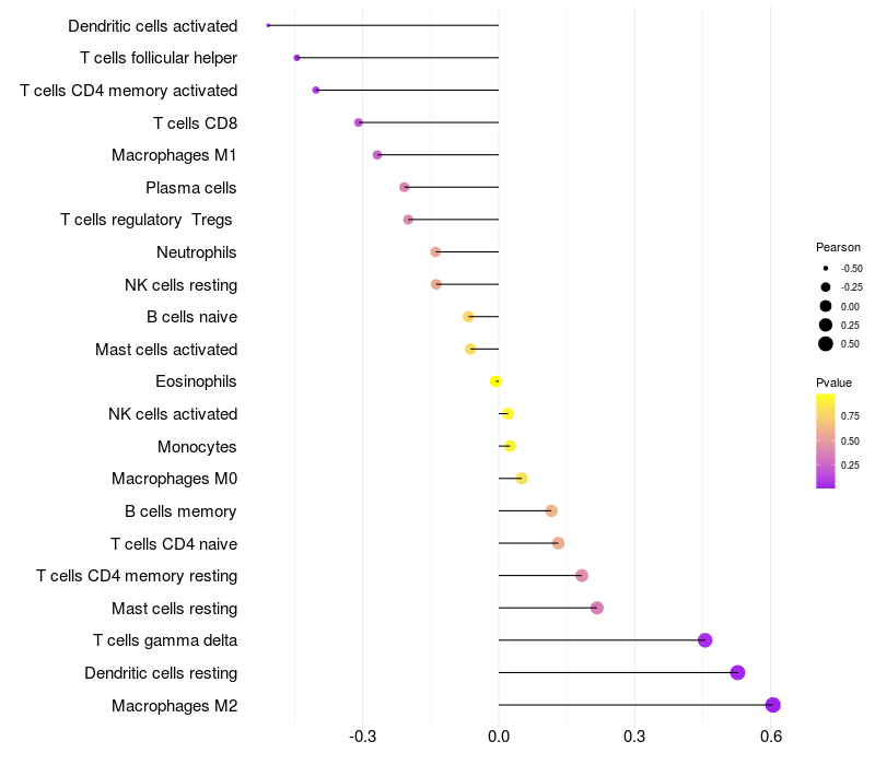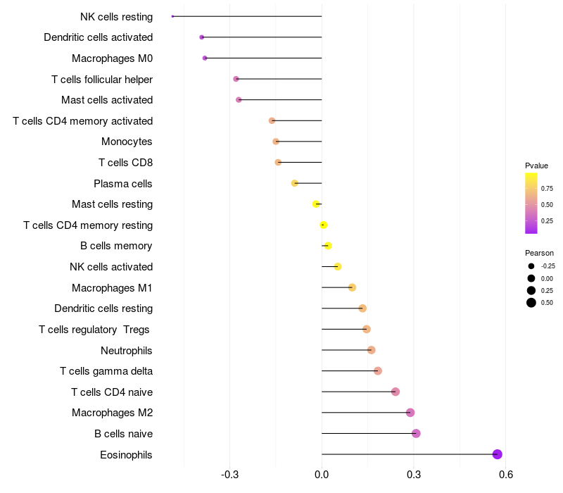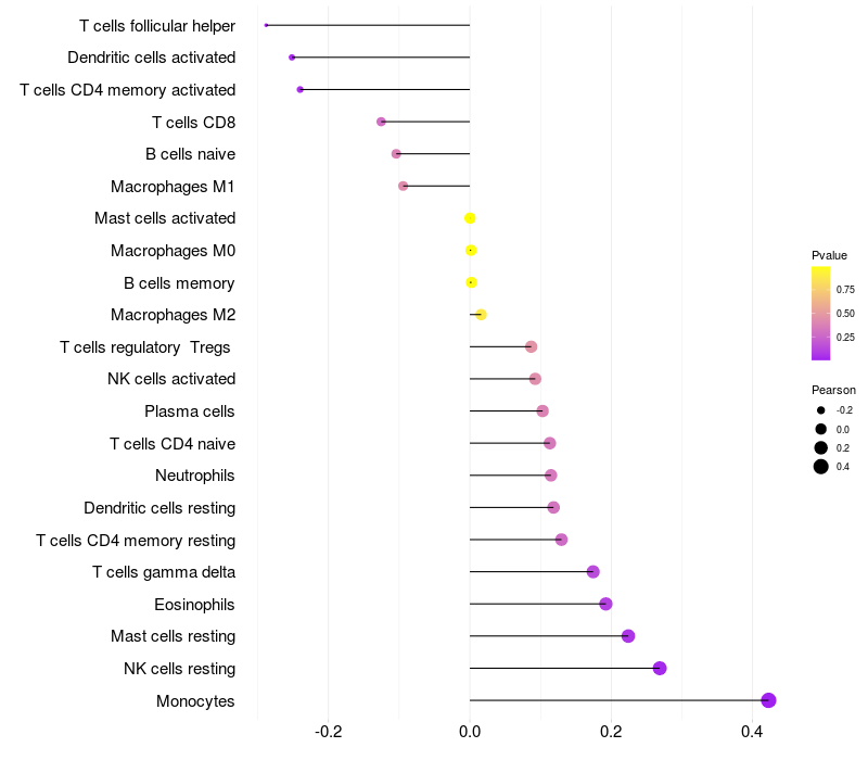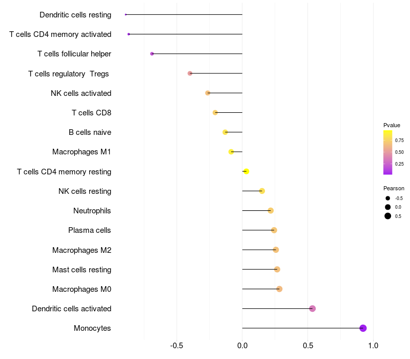 HeatMap of cell type fractions in all samples Lollipop of TMEM100 expression and immune infiltrating cell level correlation result in HPV+ samples