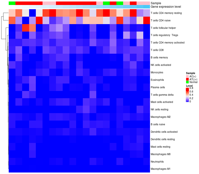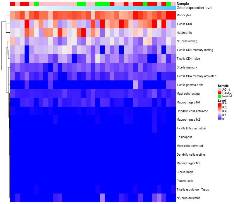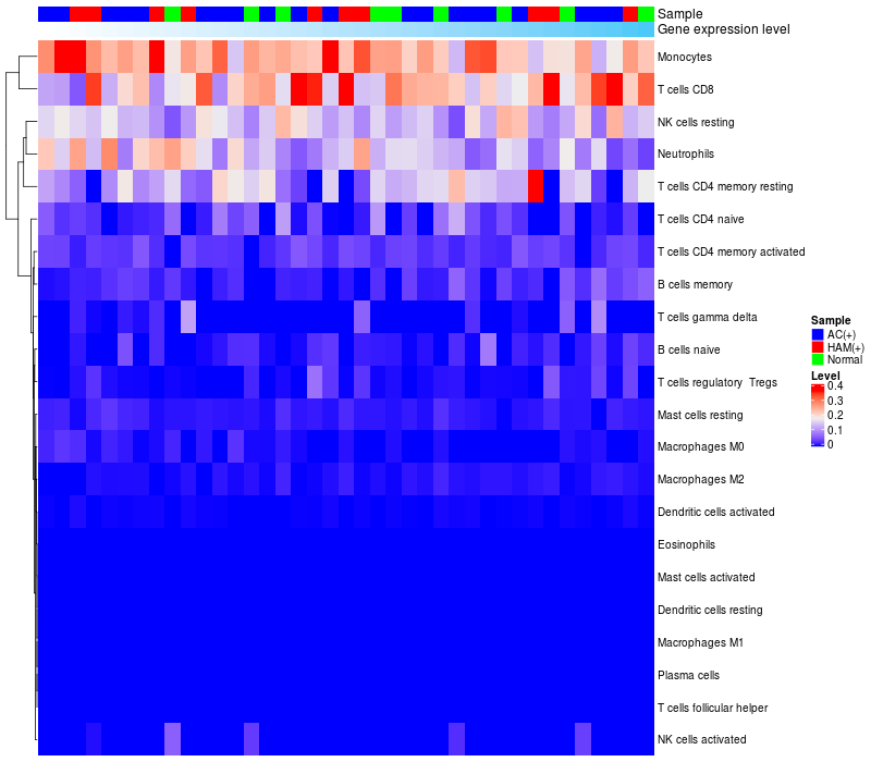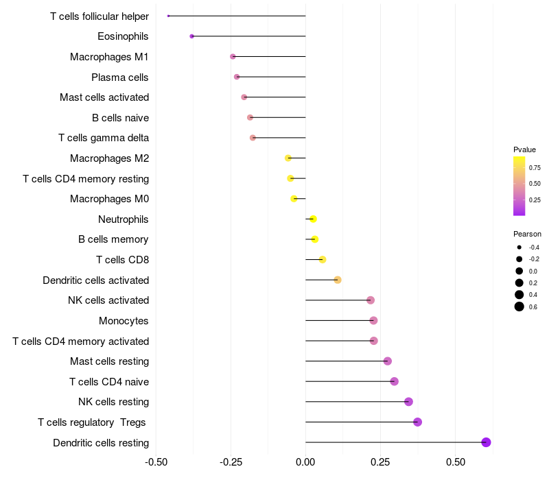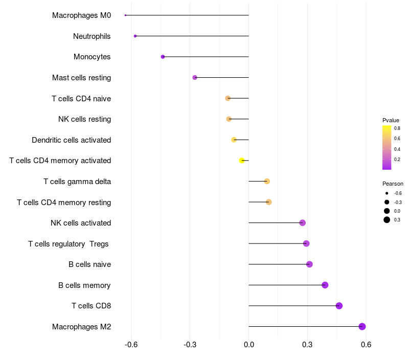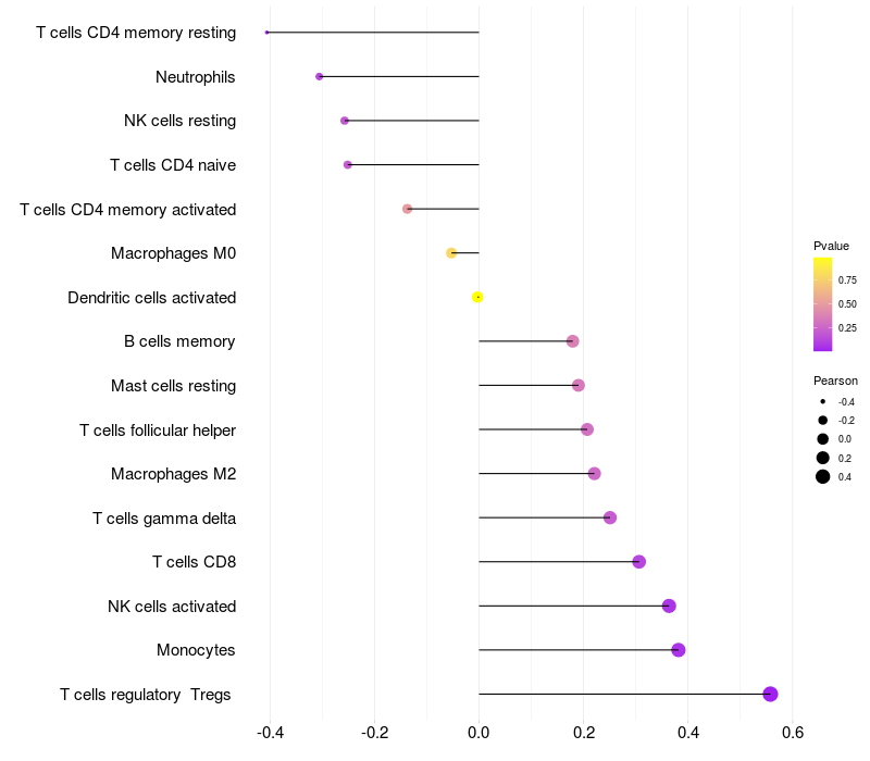 Lollipop of TMEM101 expression and immune infiltrating cell level correlation result in HTLV1+ samples