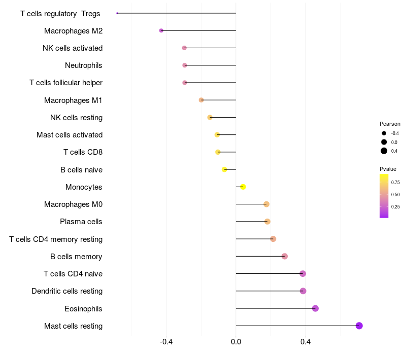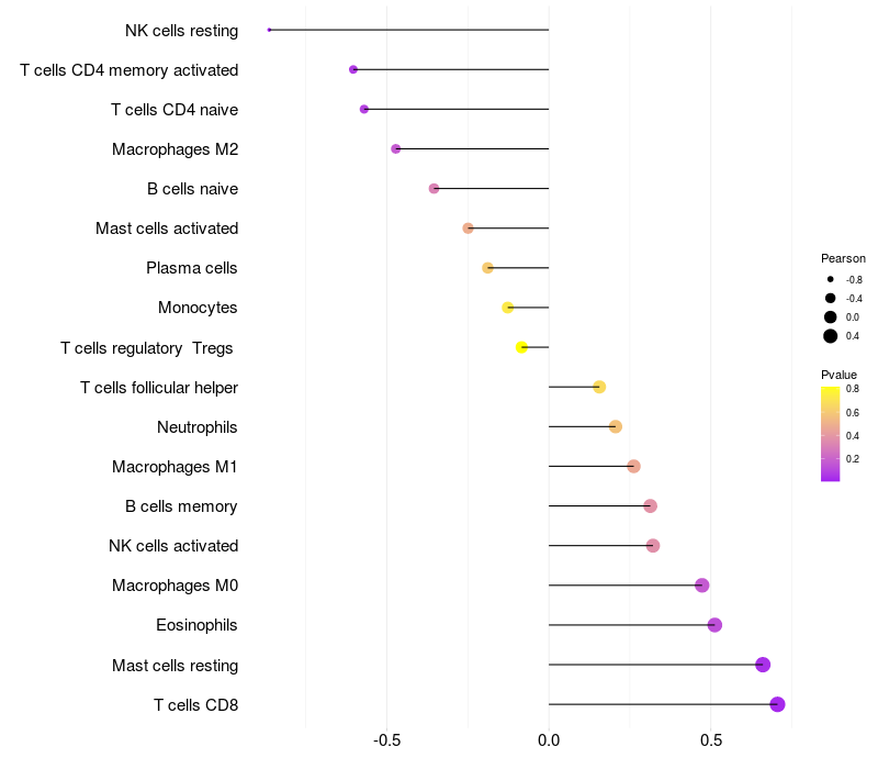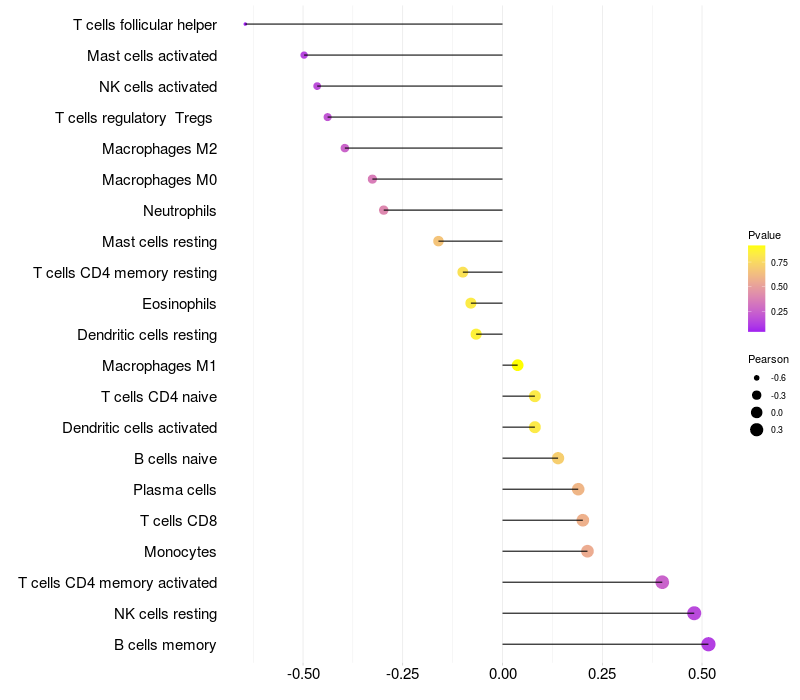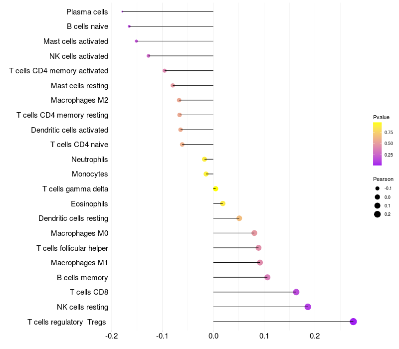 Lollipop of TMEM116 expression and immune infiltrating cell level correlation result in HBV+ Liver cirrhosis samples