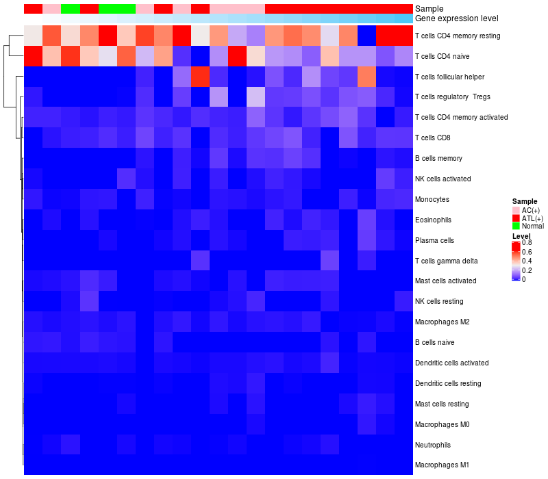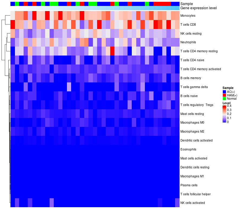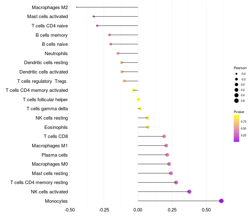 Relationship between gene expression and immune infiltrating cell level