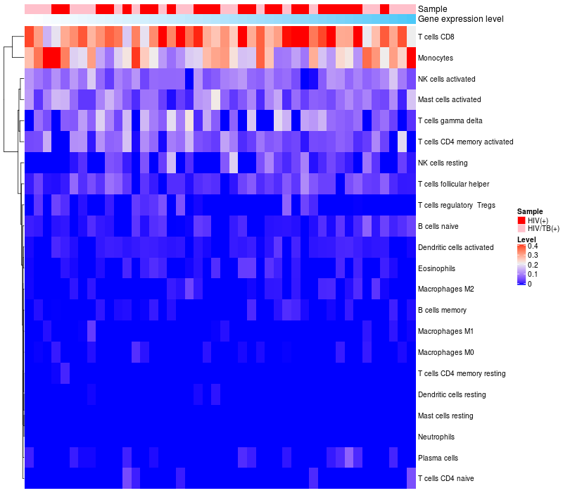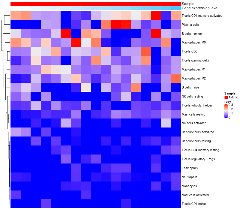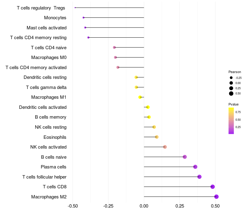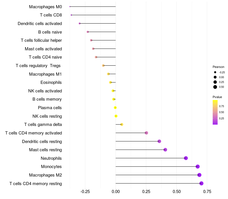 Relationship between gene expression and immune infiltrating cell level