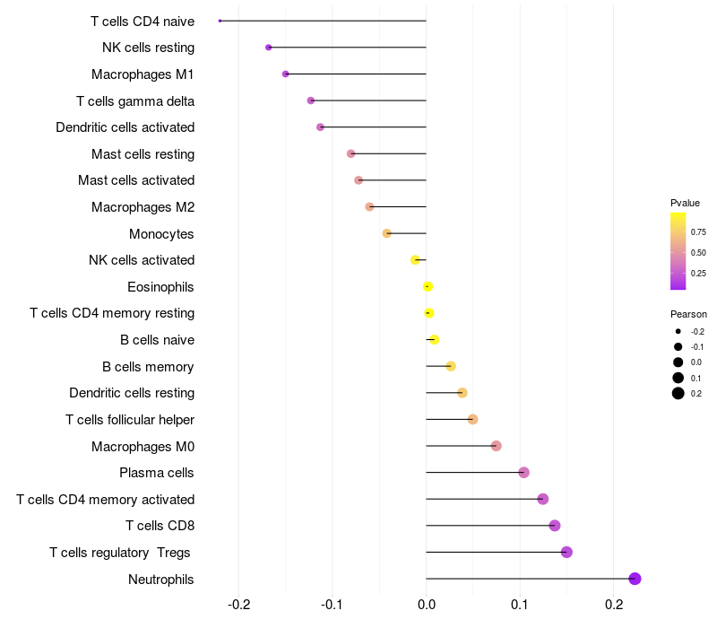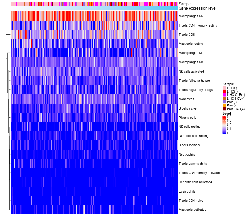 Relationship between gene expression and immune infiltrating cell level