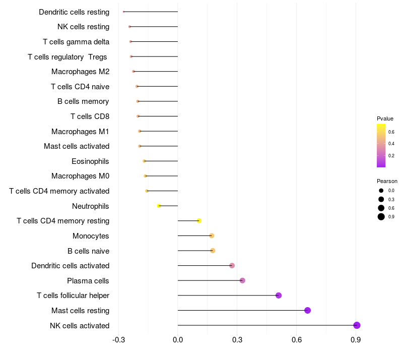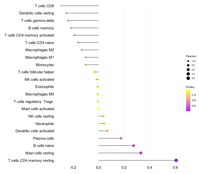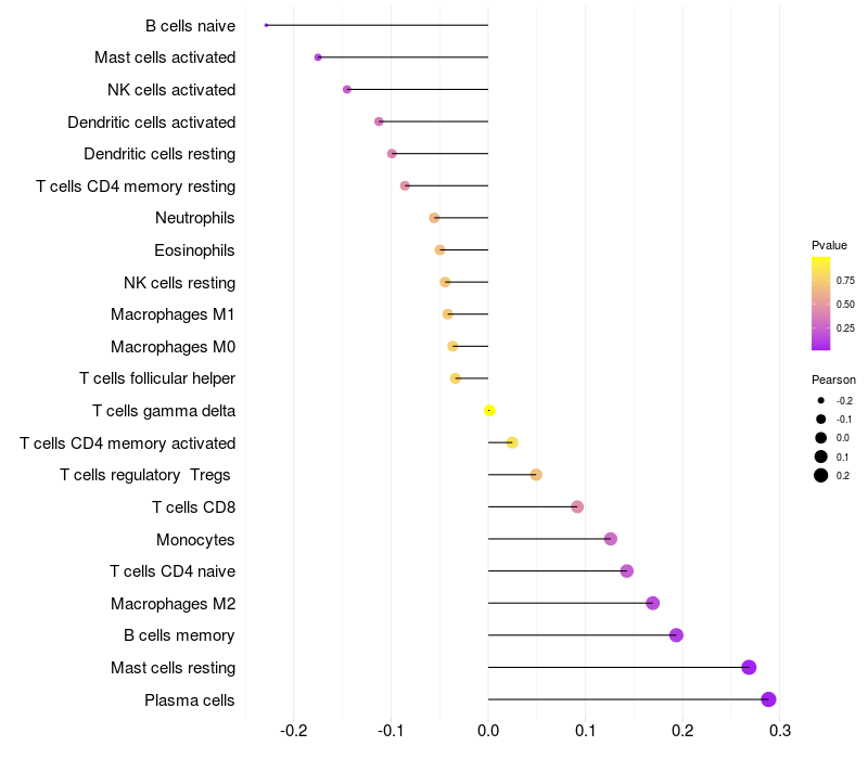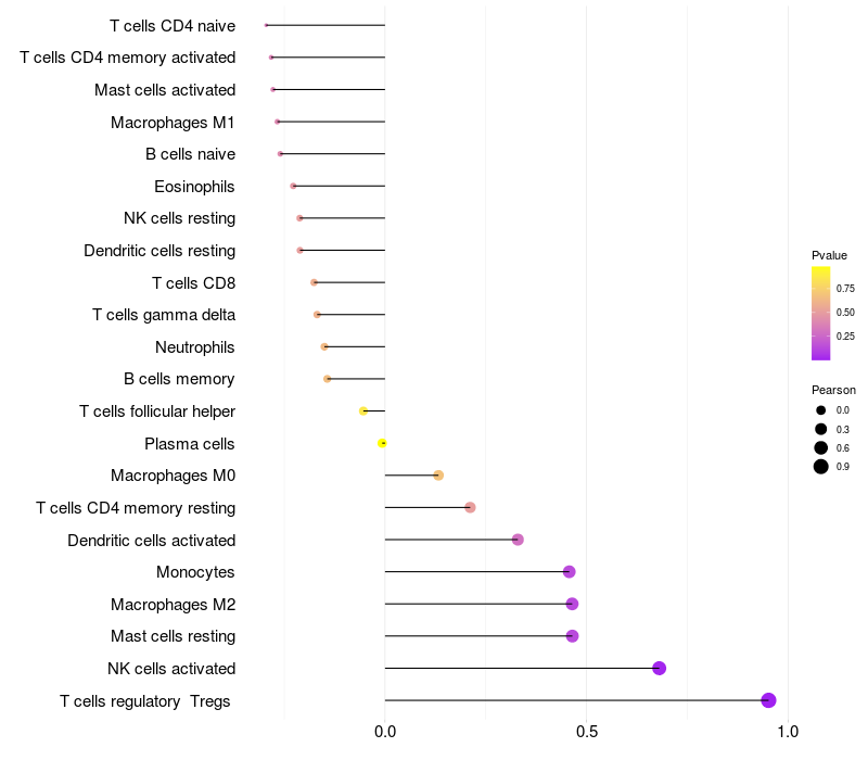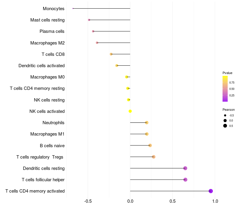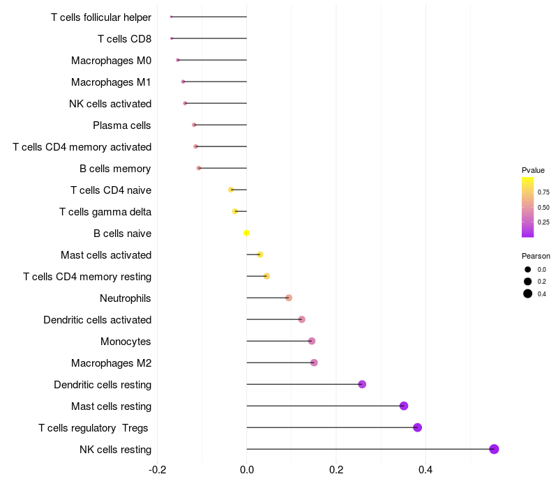 HeatMap of cell type fractions in all samples Lollipop of TMEM207 expression and immune infiltrating cell level correlation result in HPV+ samples