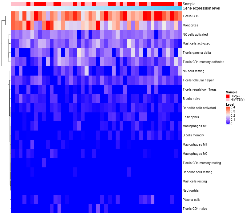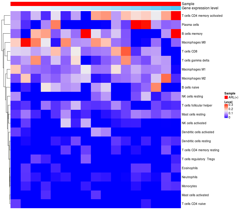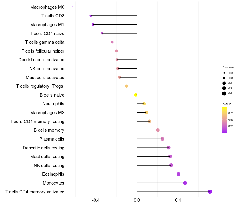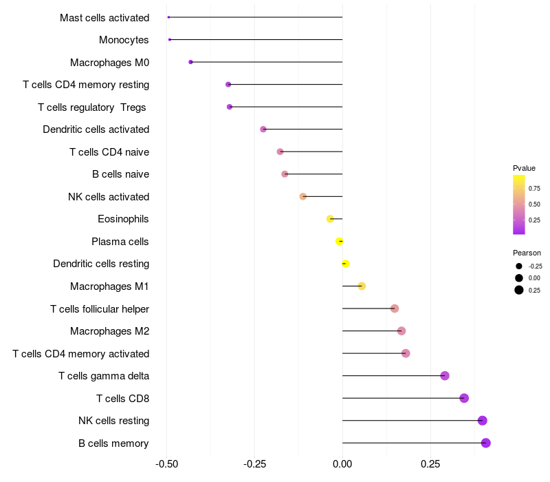 Relationship between gene expression and immune infiltrating cell level