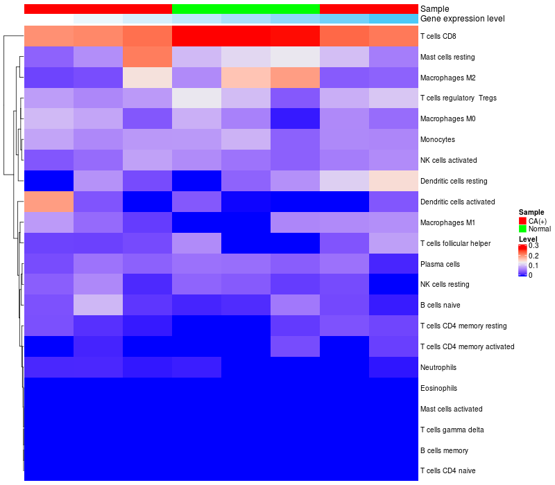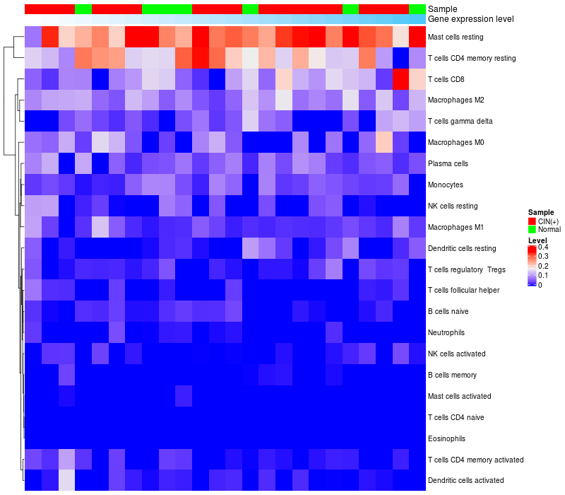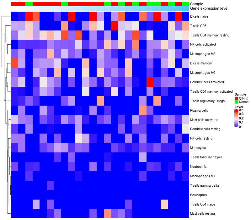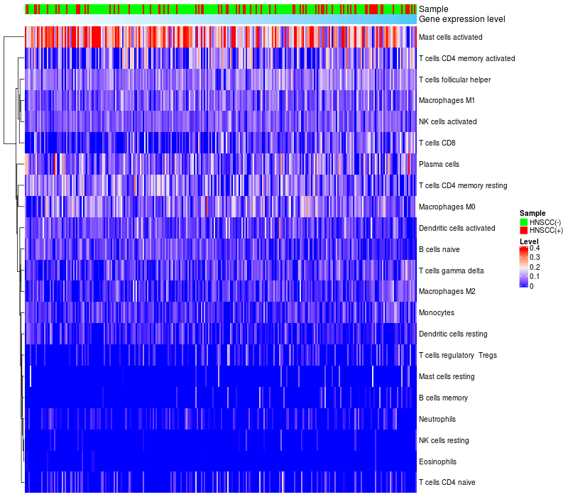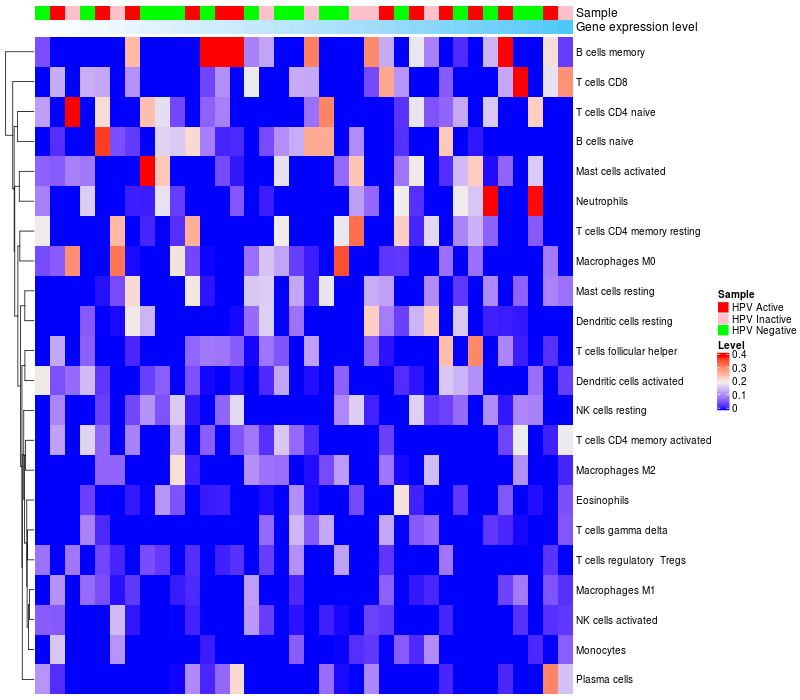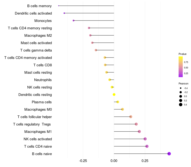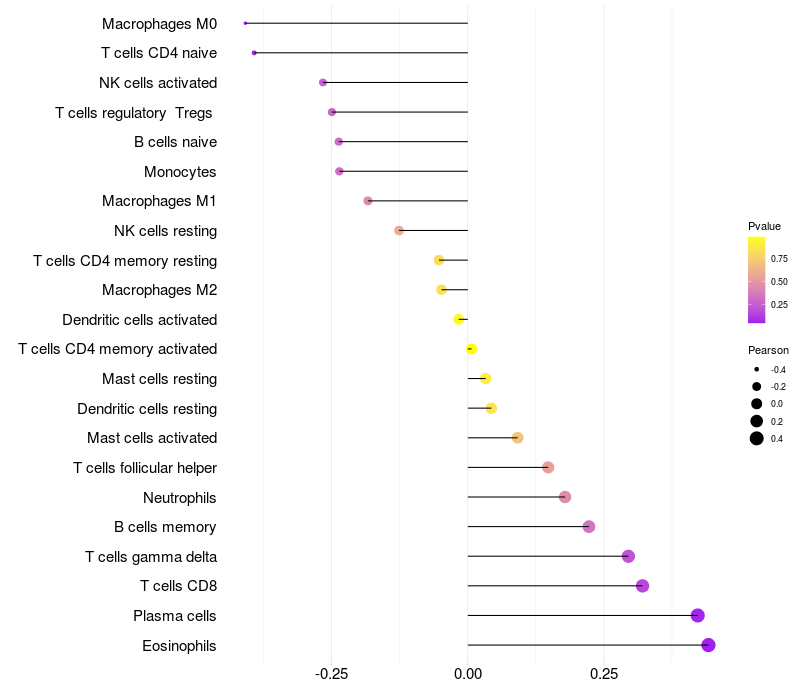 Lollipop of TMEM219 expression and immune infiltrating cell level correlation result in HPV+ samples