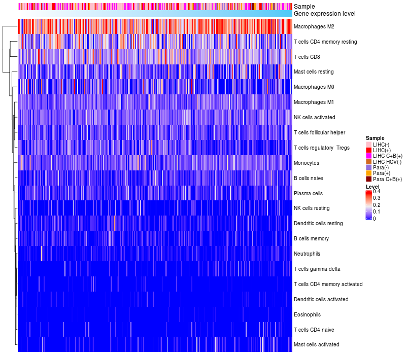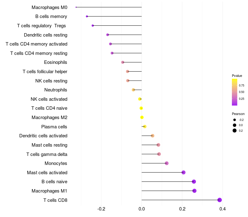 Relationship between gene expression and immune infiltrating cell level