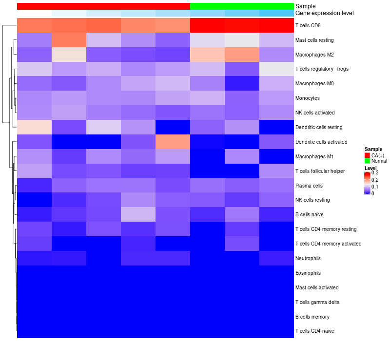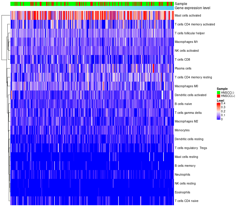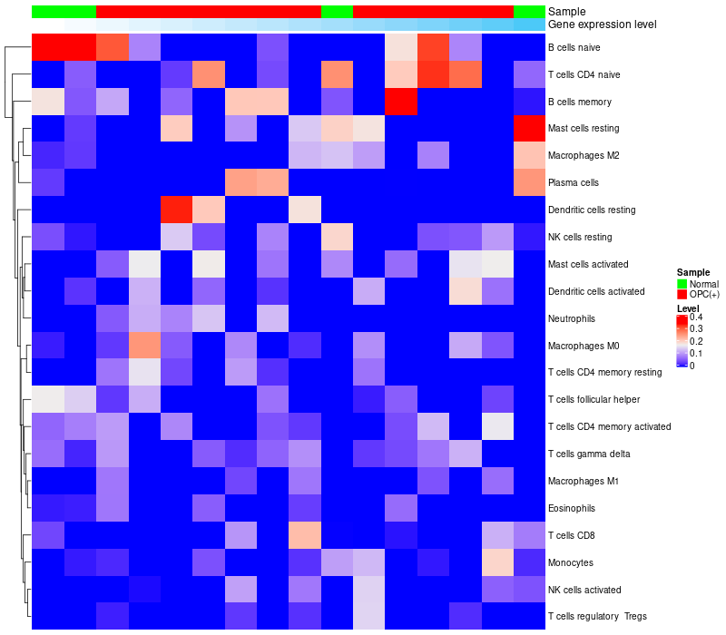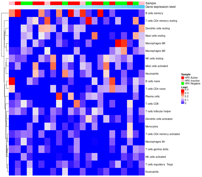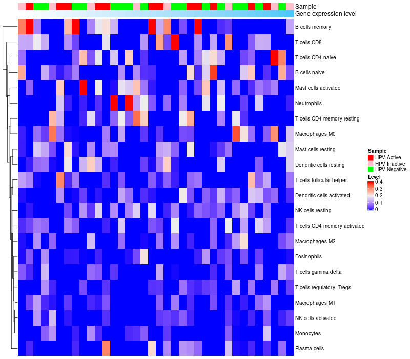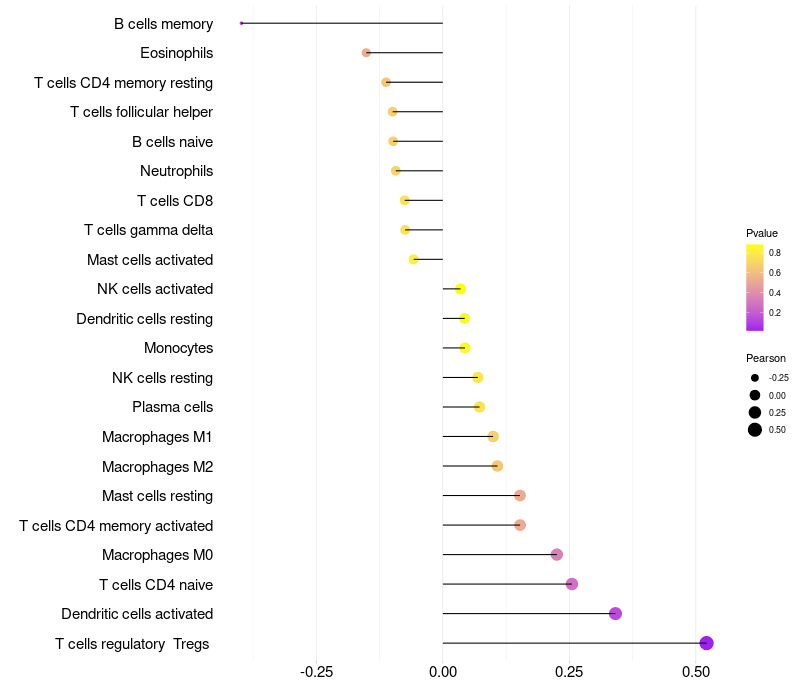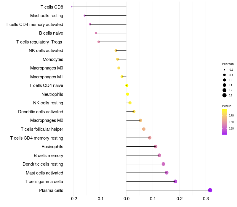 Lollipop of TMEM30B expression and immune infiltrating cell level correlation result in HPV+ samples