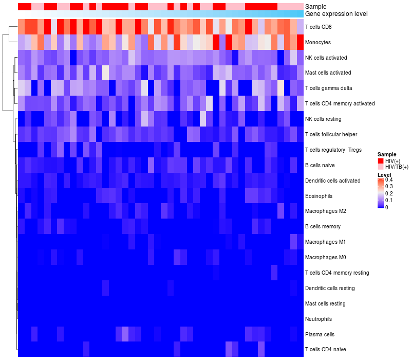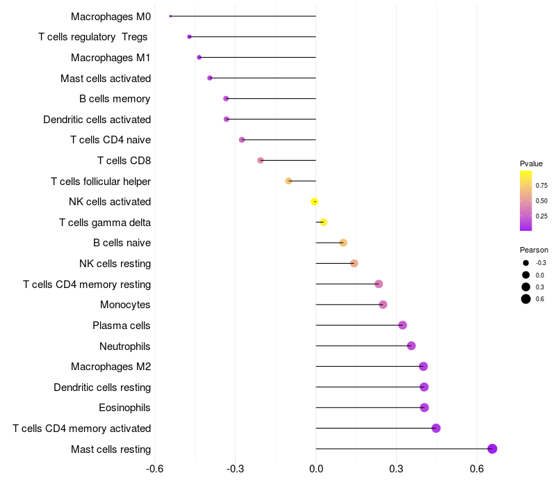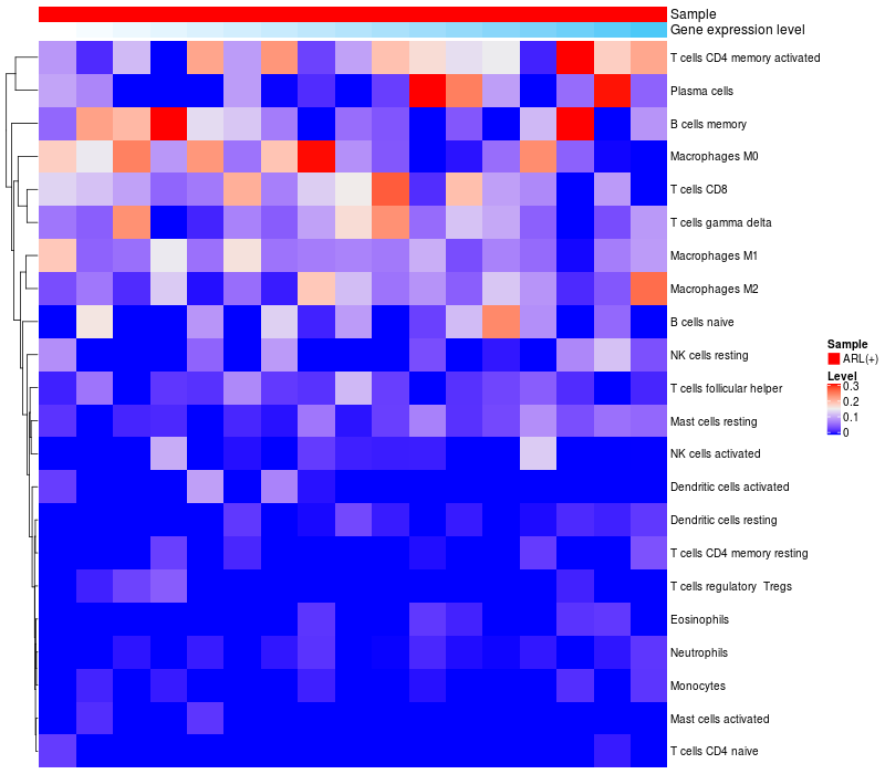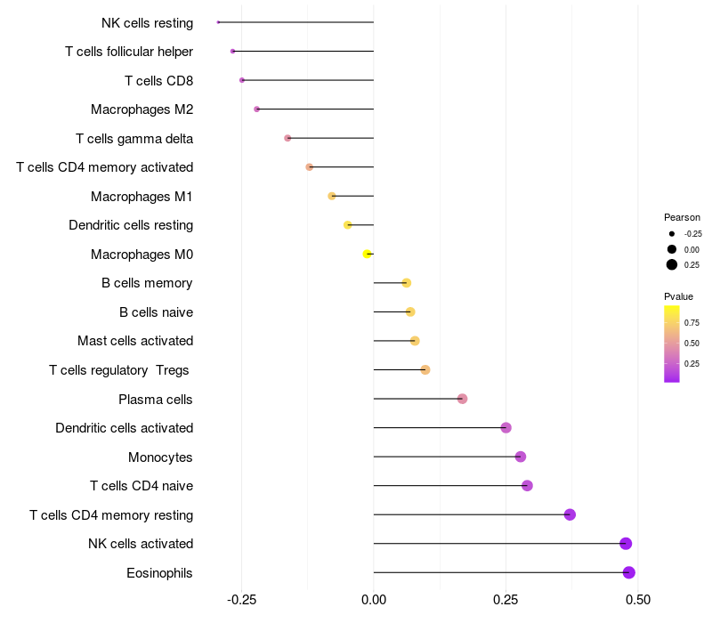 Relationship between gene expression and immune infiltrating cell level