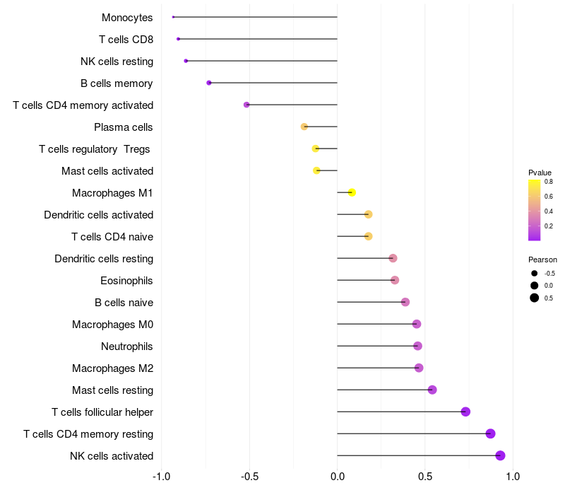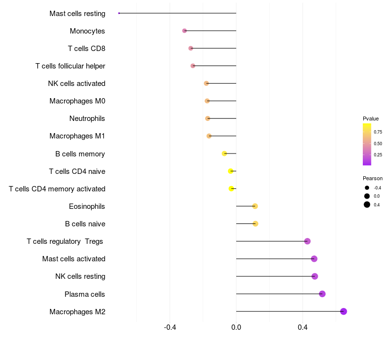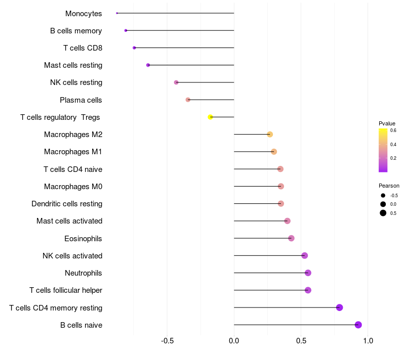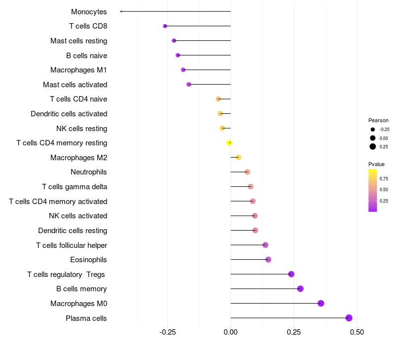 Lollipop of TMEM44 expression and immune infiltrating cell level correlation result in HBV+ Liver cirrhosis samples