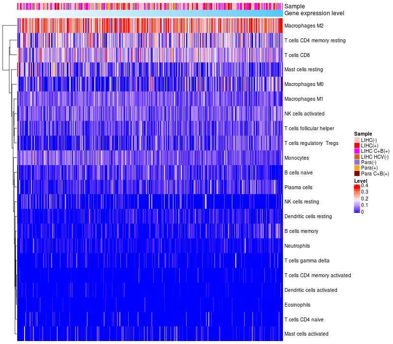 Relationship between gene expression and immune infiltrating cell level