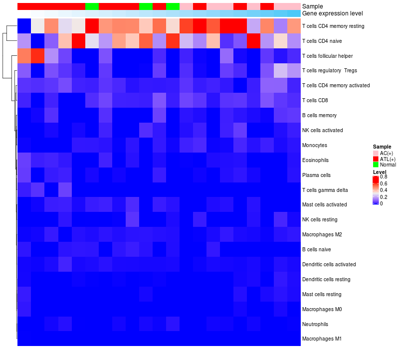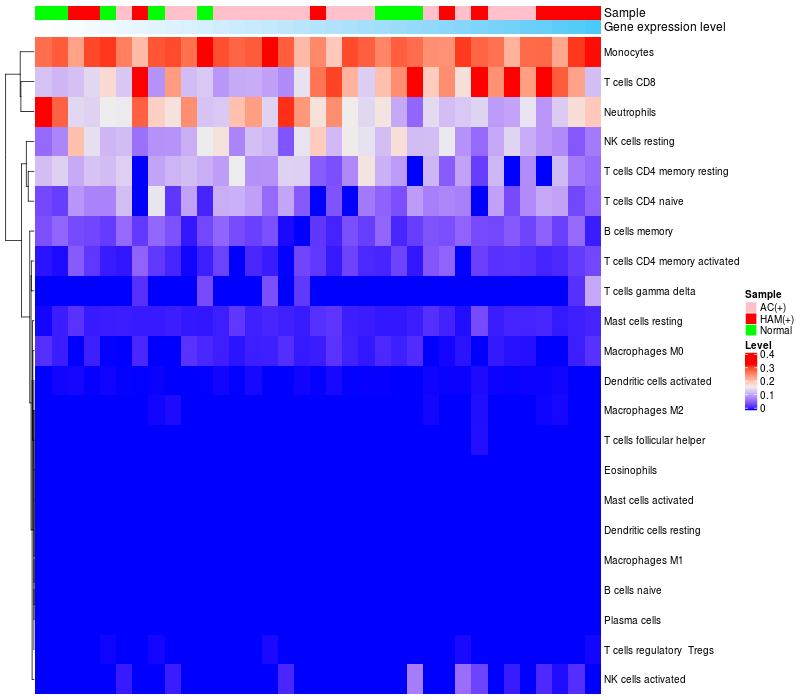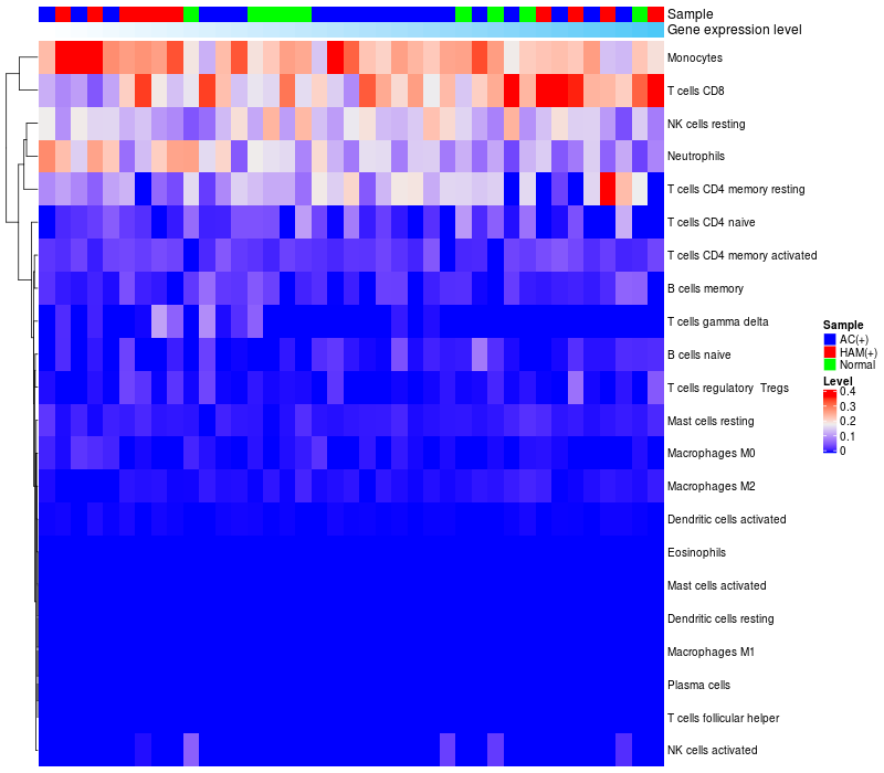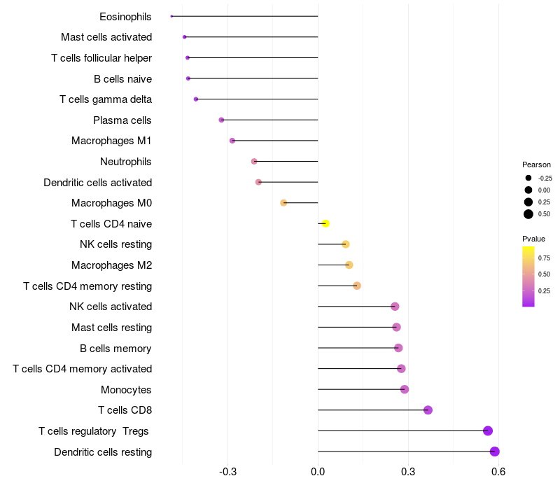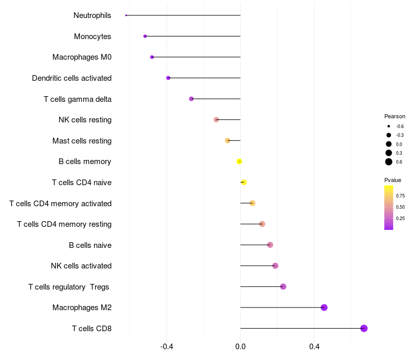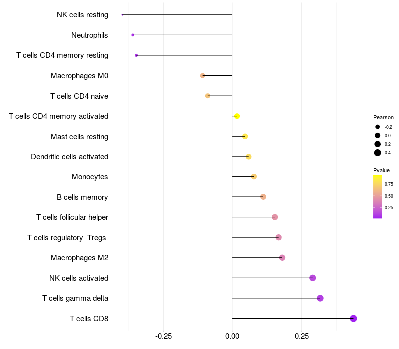 Lollipop of TMEM50B expression and immune infiltrating cell level correlation result in HTLV1+ samples