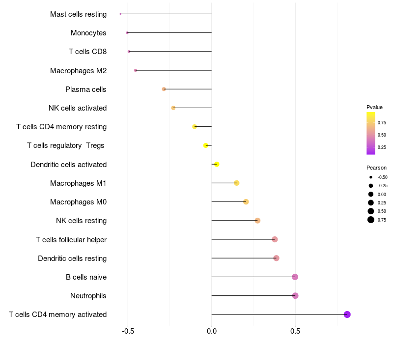 Relationship between gene expression and immune infiltrating cell level