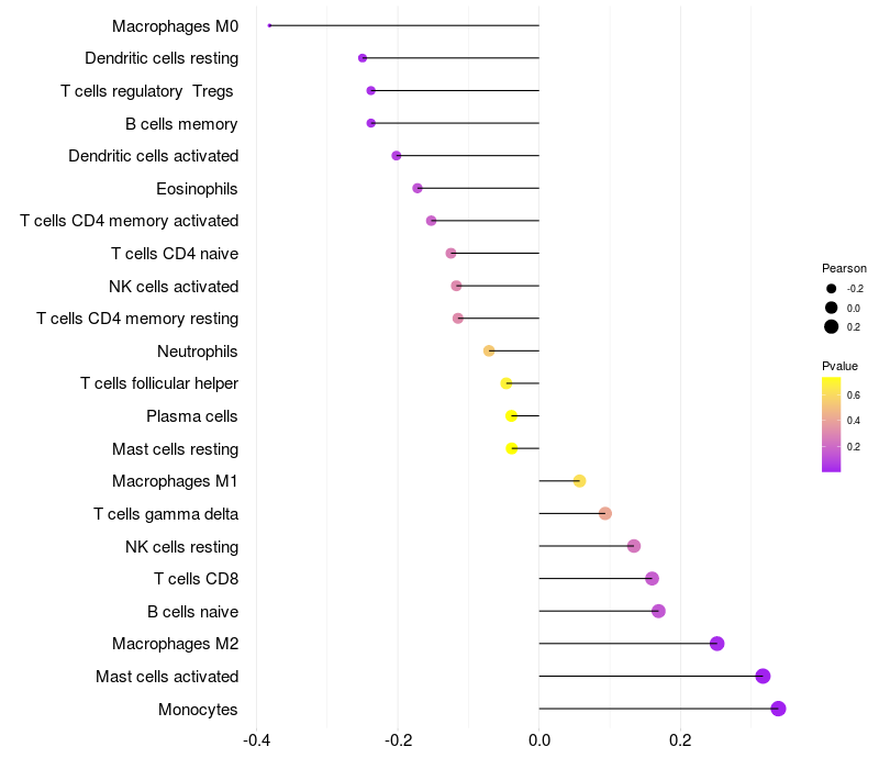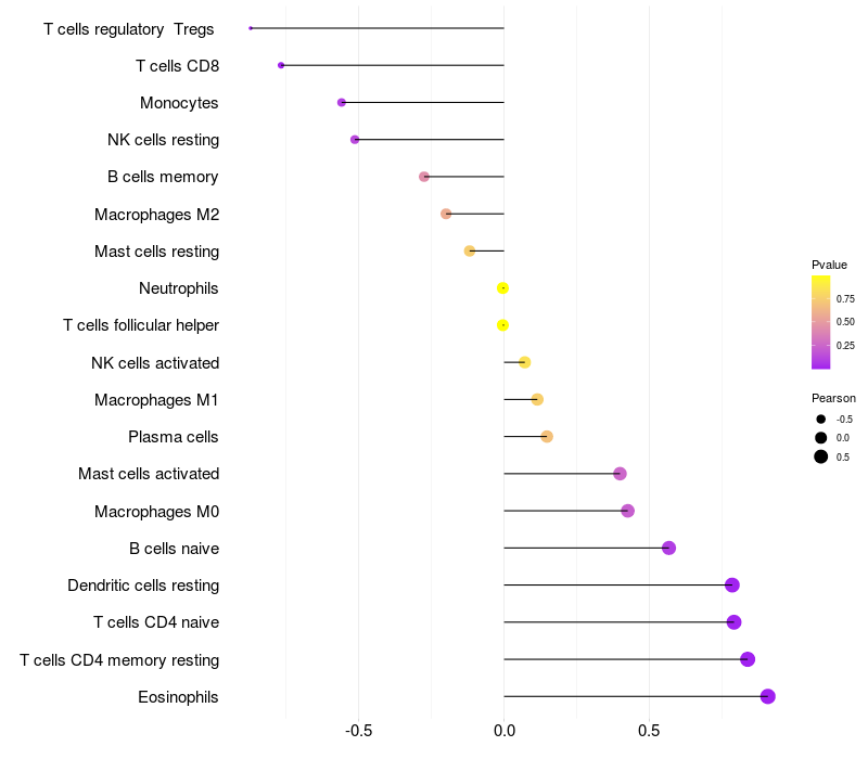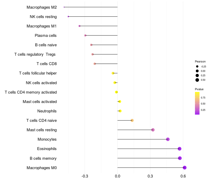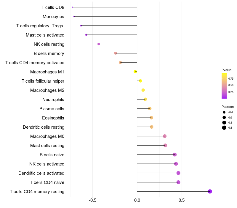 Lollipop of TMEM53 expression and immune infiltrating cell level correlation result in HBV+ Liver cirrhosis samples