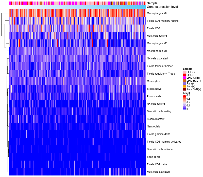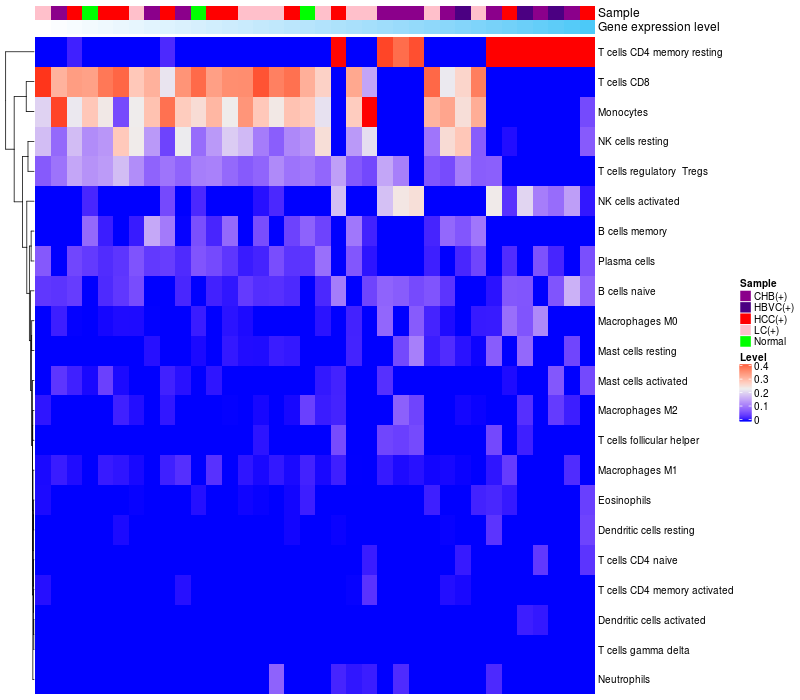 Relationship between gene expression and immune infiltrating cell level