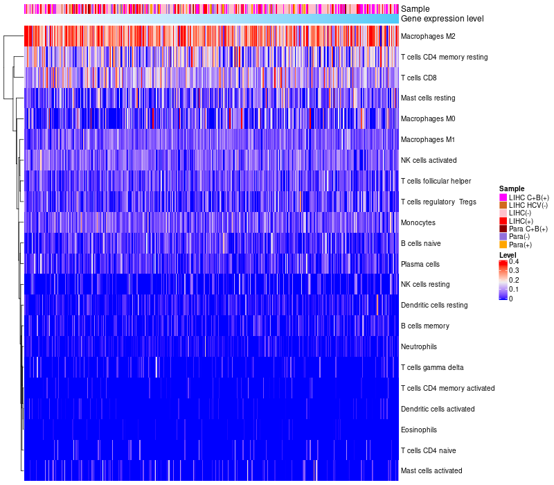 Relationship between gene expression and immune infiltrating cell level