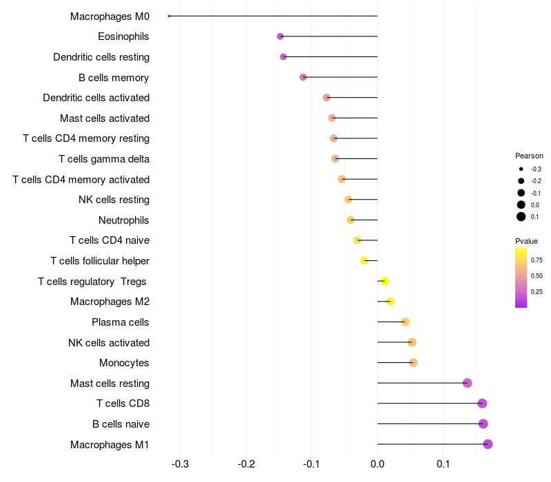 Lollipop of TMPRSS6 expression and immune infiltrating cell level correlation result in HBV+ samples