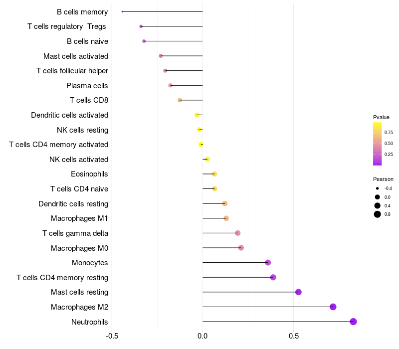 Relationship between gene expression and immune infiltrating cell level