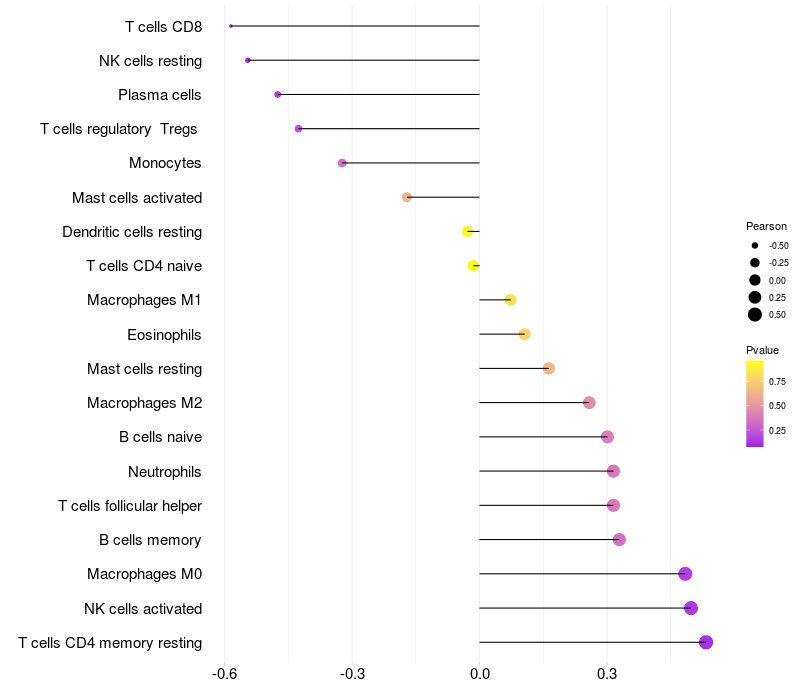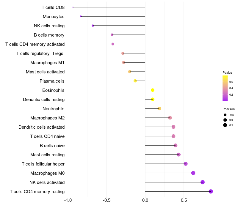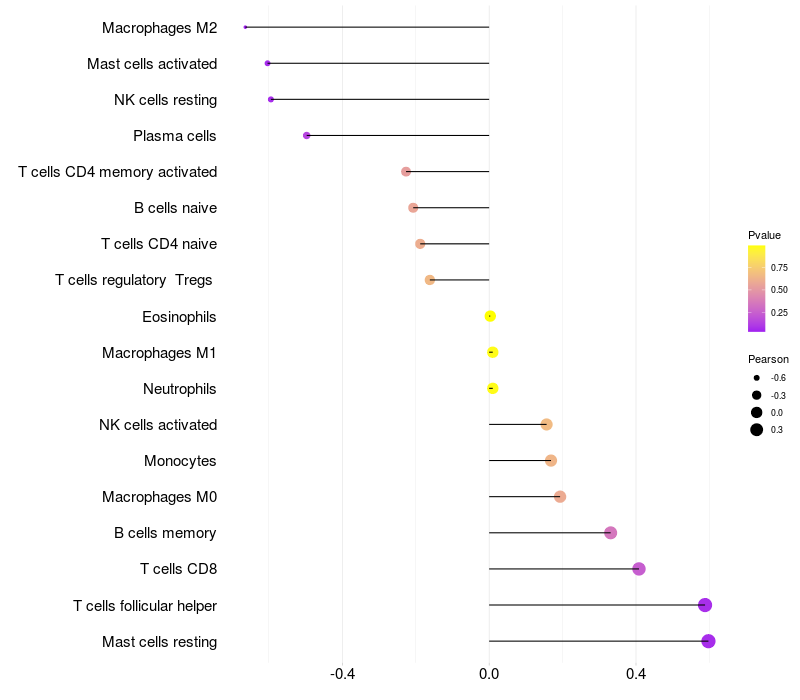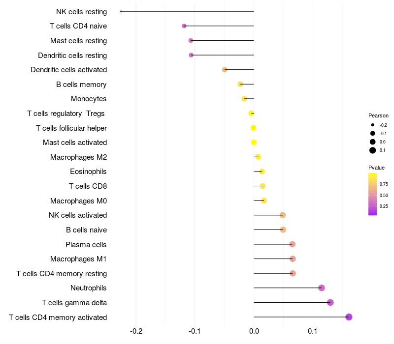 Lollipop of TNIK expression and immune infiltrating cell level correlation result in HBV+ Liver cirrhosis samples