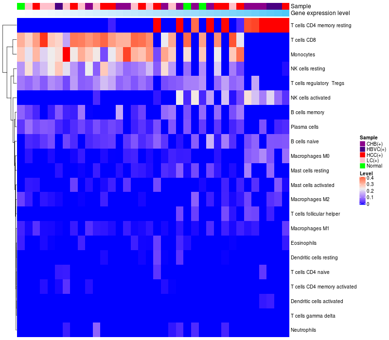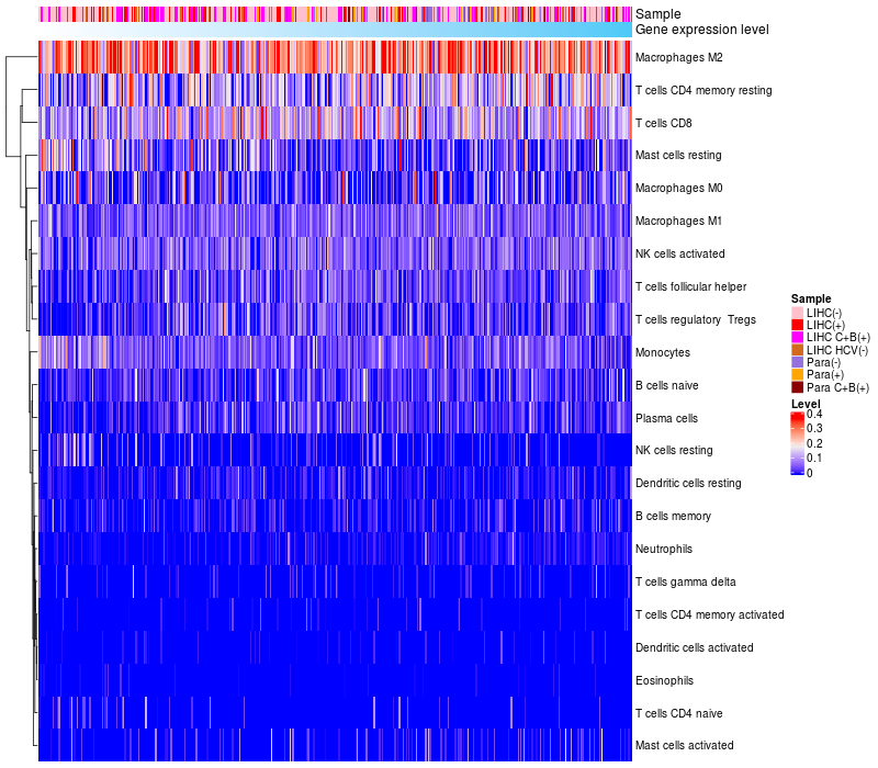 Liver hepatocellular carcinoma HCV (HBV+)(86), Liver hepatocellular carcinoma HCV (HBV-)(19), Liver hepatocellular carcinoma (HBV+)(209), Liver hepatocellular carcinoma (HBV+)(60), Paracancerous HCV (HBV+)(4), Paracancerous (HBV-)(28), Paracancerous (HBV+)(18) |