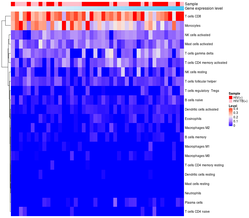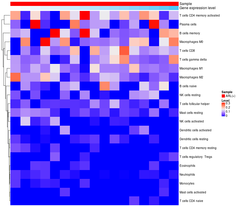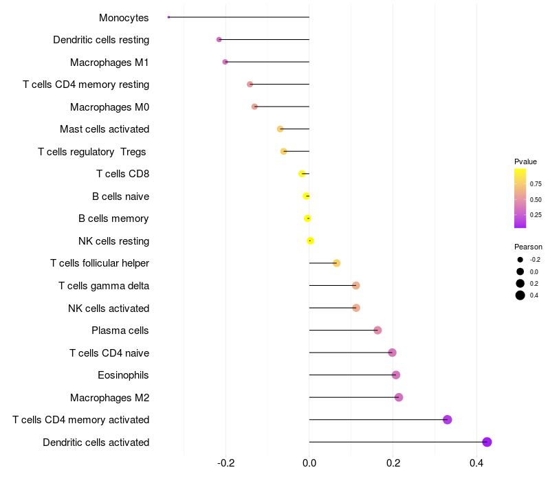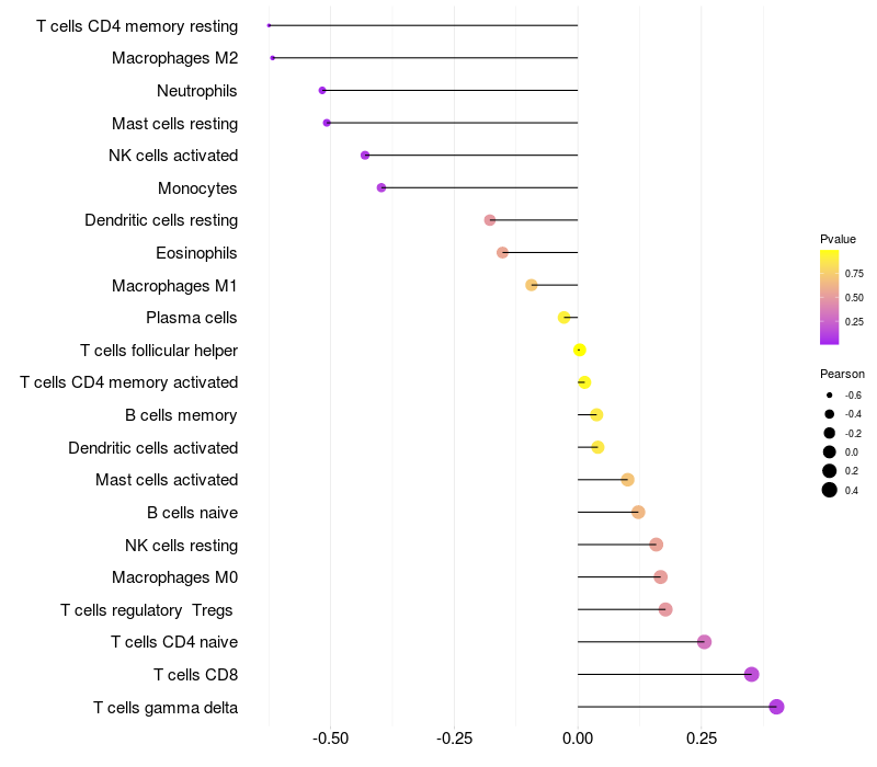 Relationship between gene expression and immune infiltrating cell level