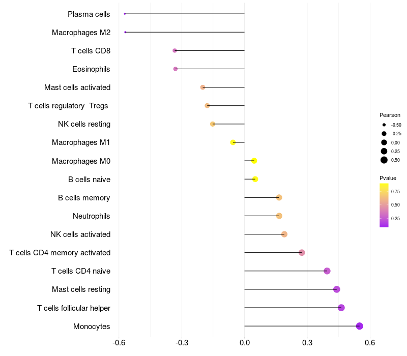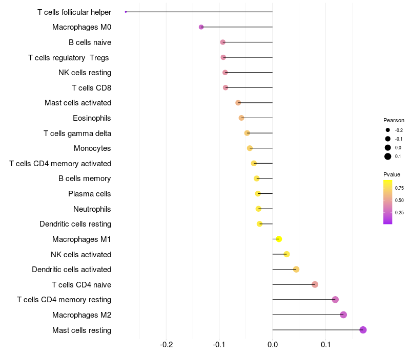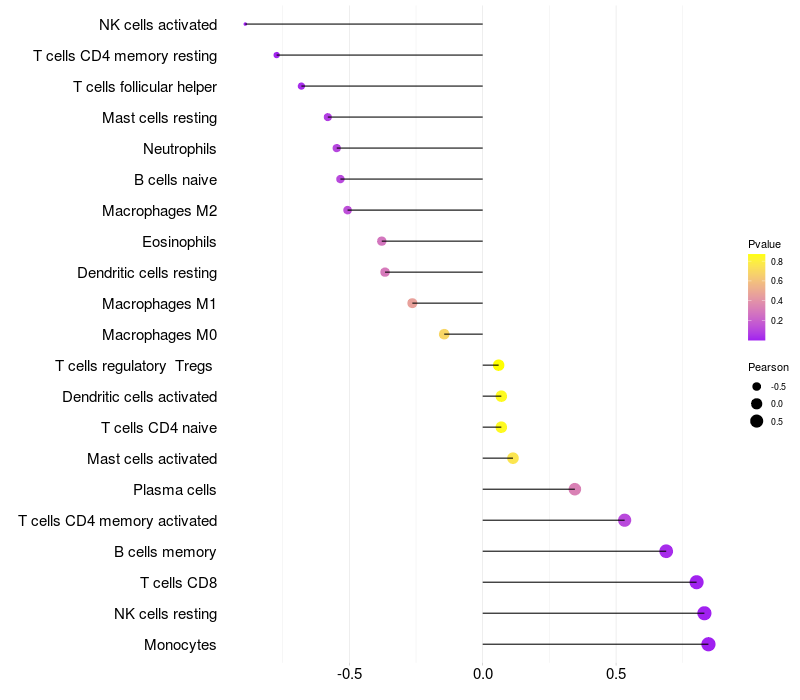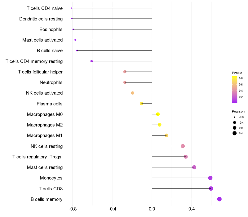 Lollipop of TNRC6B expression and immune infiltrating cell level correlation result in HBV+ Chronic HBV (CHB) infection samples