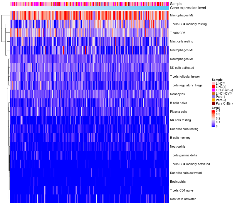 Liver hepatocellular carcinoma HCV (HBV+)(86), Liver hepatocellular carcinoma HCV (HBV-)(19), Liver hepatocellular carcinoma (HBV+)(209), Liver hepatocellular carcinoma (HBV+)(60), Paracancerous HCV (HBV+)(4), Paracancerous (HBV-)(28), Paracancerous (HBV+)(18) |