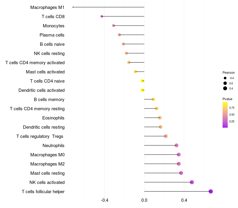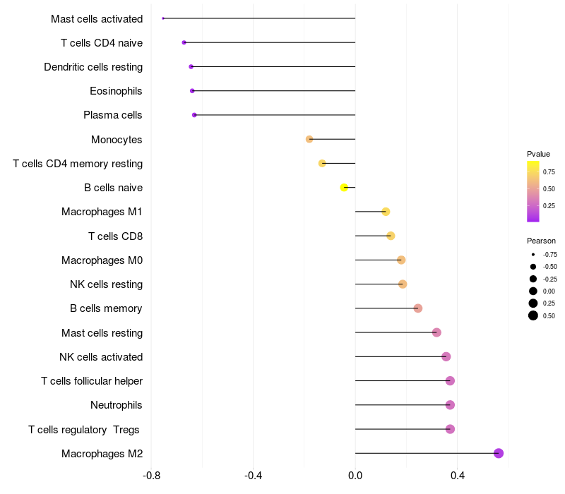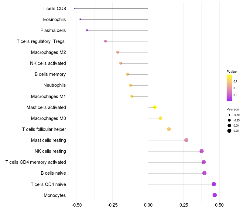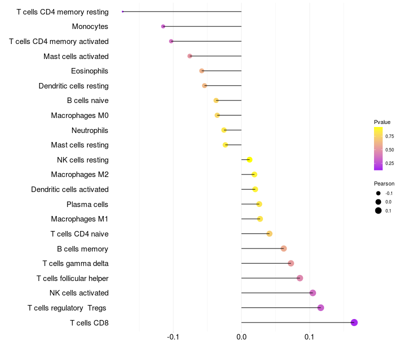 Lollipop of TNRC6C expression and immune infiltrating cell level correlation result in HBV+ Chronic HBV (CHB) infection samples